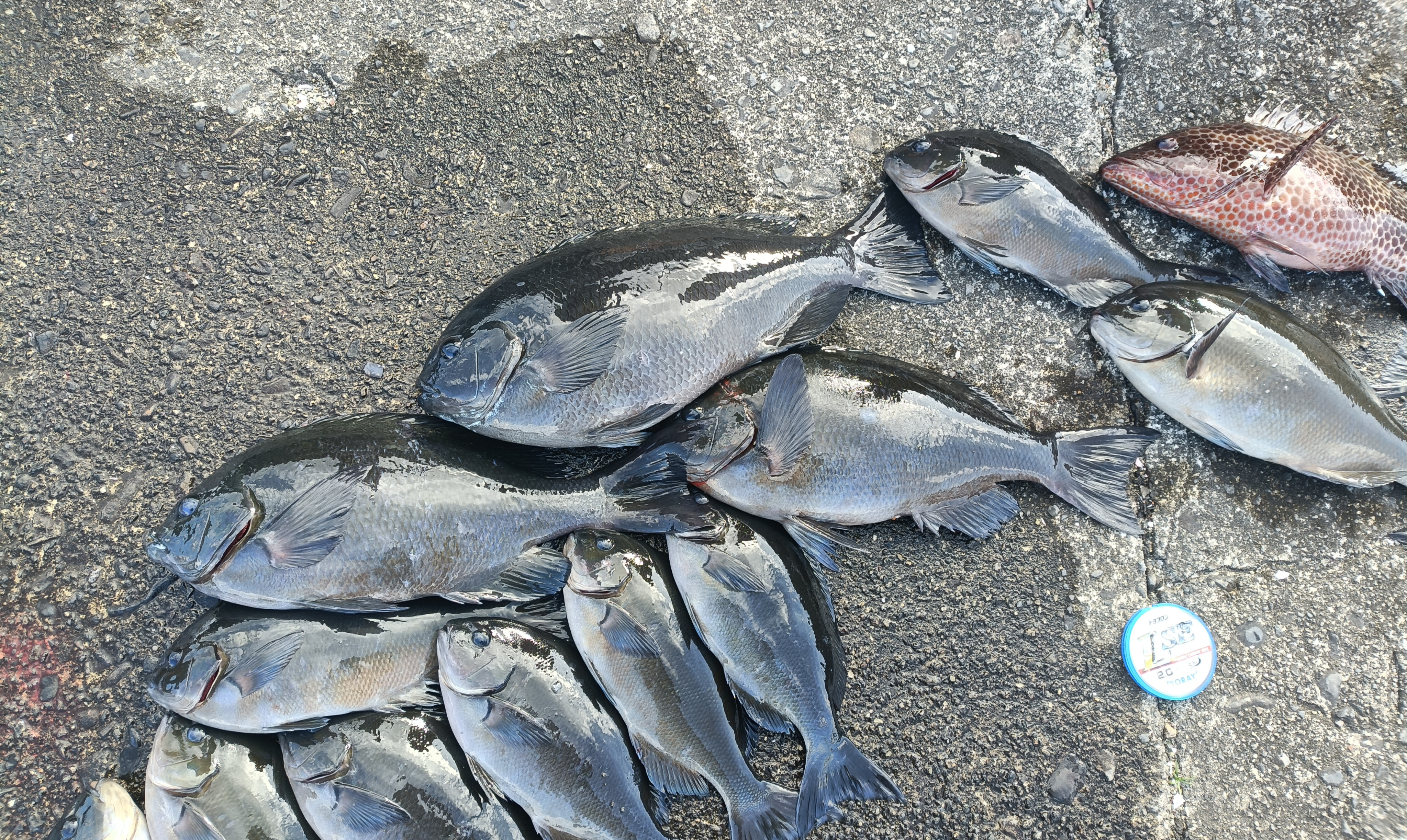 寒グレシーズン本番!お誘い頂き初の島勝へ!宮澤渡船さんにお世話になりました!大寒波で朝から雪もチラつく…。風裏のササドの地へ渡して頂きました!爆風日とは思えない程の風裏(^^)朝からコッパ尾長が元気でサイズが上がらない。そうこうしていると同行の2人は44cm口太、40cmの尾長をしっかりGET(*´ω`*)太太グレを狙い際狙いに絞りネチネチ際を探ると待望のアタリ!43cm口太グレをGET(。•̀ᴗ-)✧タナは深く竿1本半強!その後もしつこく際狙いましたが…。寒グレの貴重な1匹でした(≧▽≦)写真は3人の釣果です!