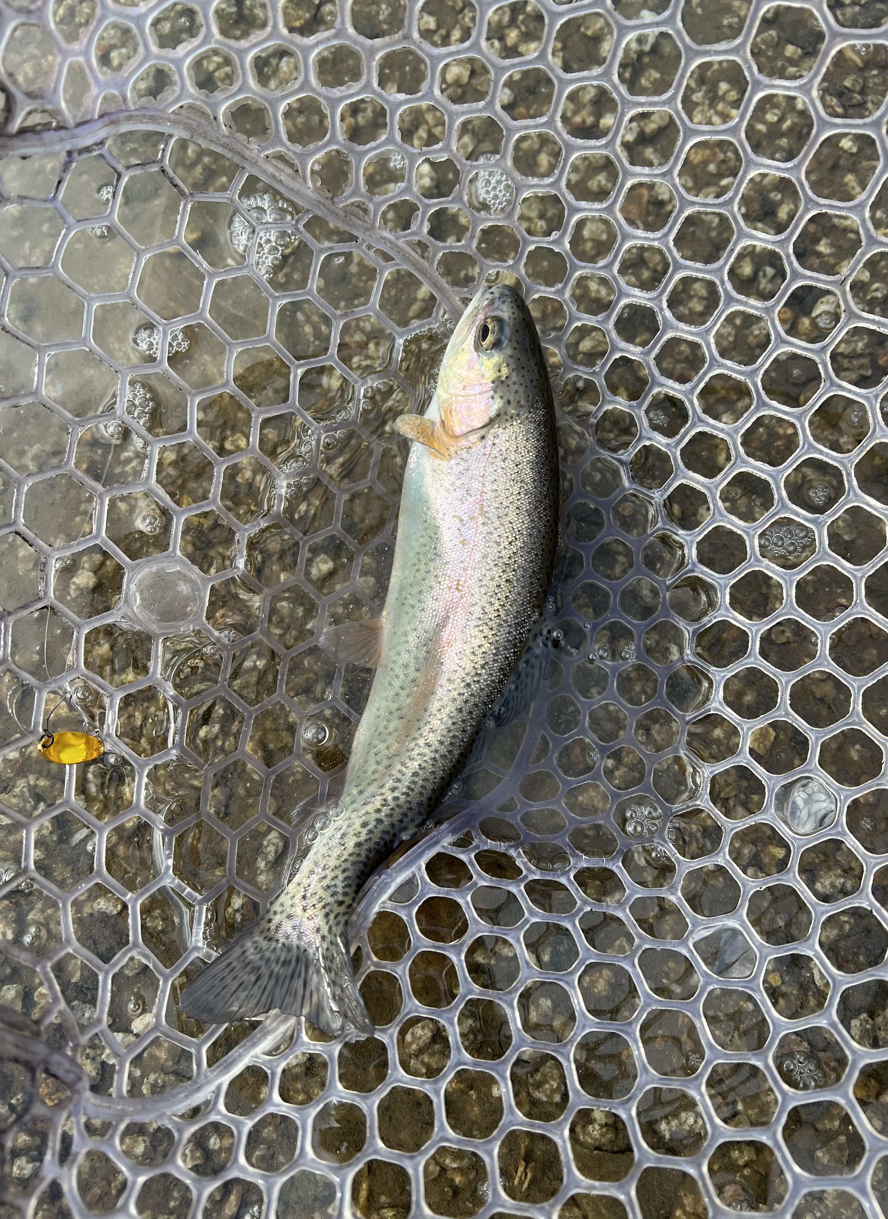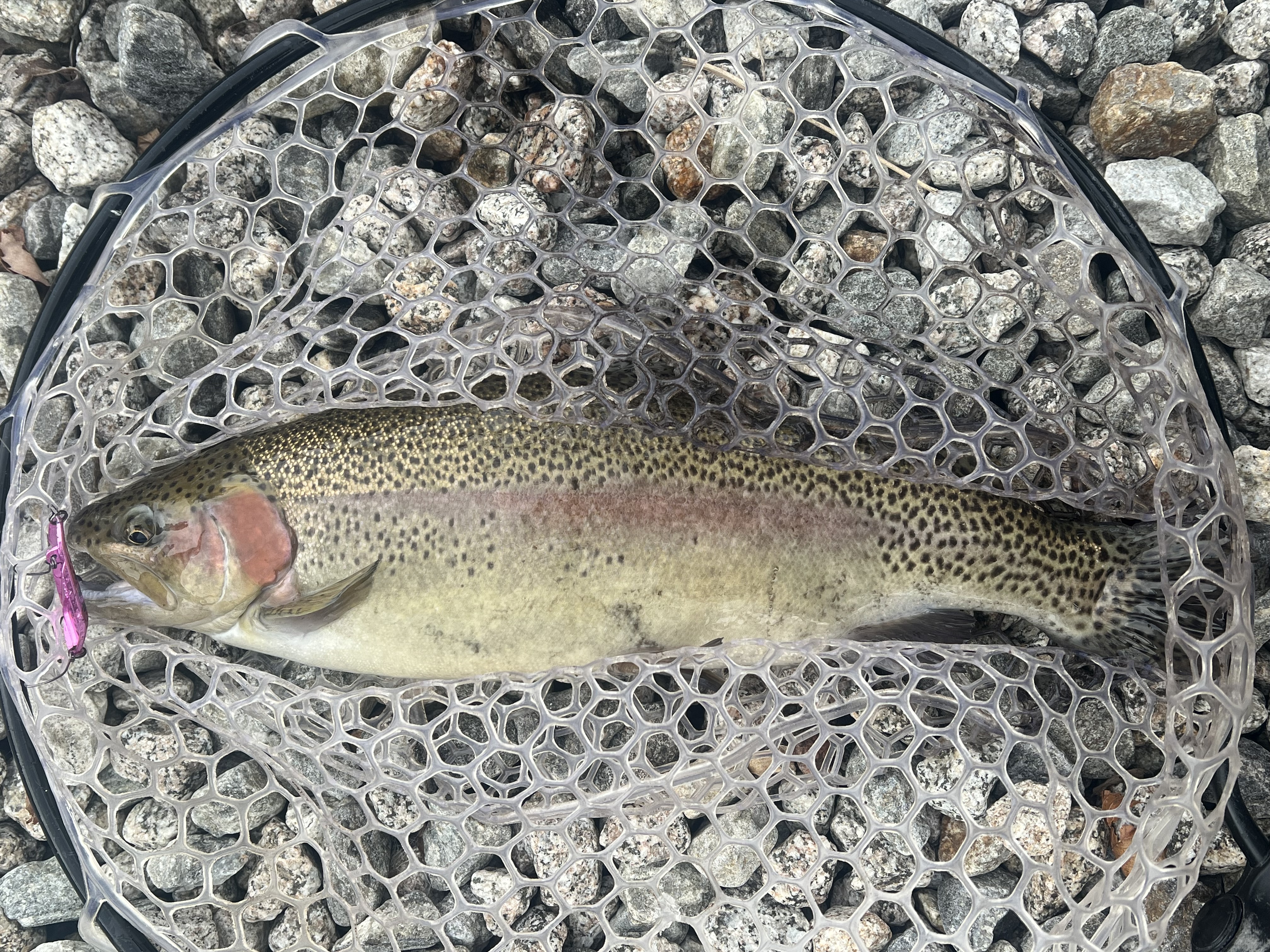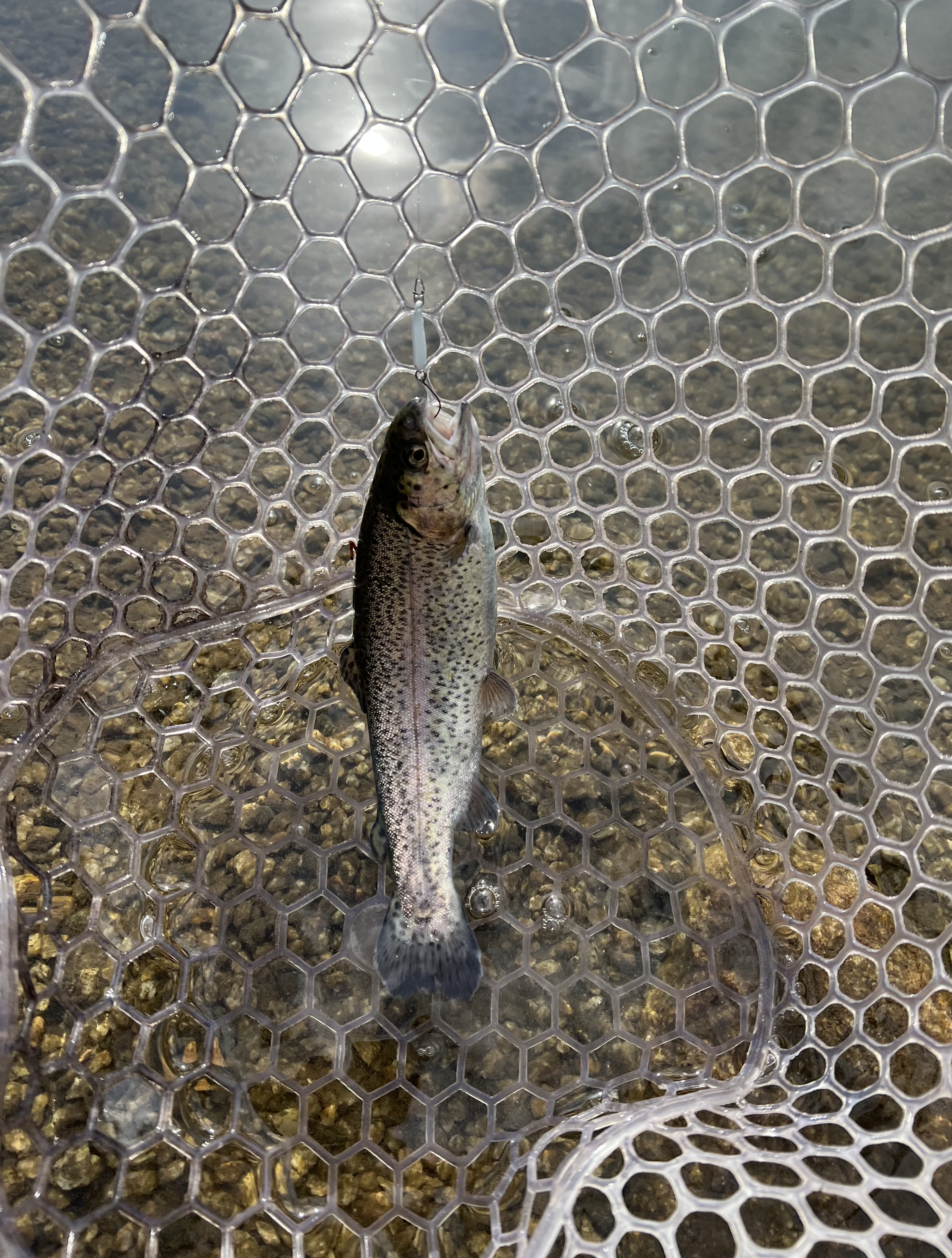 この日は今年初めての戸神の池様へ行きエリアトラウトをしてきました。朝の気温は-3℃でかなり寒い!!とりあえず活性を見るためにノアの1.8gから投げるもチェイスはあるが口を使わない。魚全体の動きが遅そうだったのでスプーンの重さを落としていきます。1g前後で反応が出始めたのでルアーの種類を色々試すとジキルJr1.1gでヒット!スれるスピードもかなり早かったのでカラーローテーションのテンポもいつもより早くして釣果を追加。ジキルJrはただ巻きよりもタップなどのイレギュラーアクションを入れると反応が良かったです。午後は大物狙いでウルキを狙い、しっかり大物キャッチ!人も少なく快適に楽しめますのでぜひ行ってみてください!