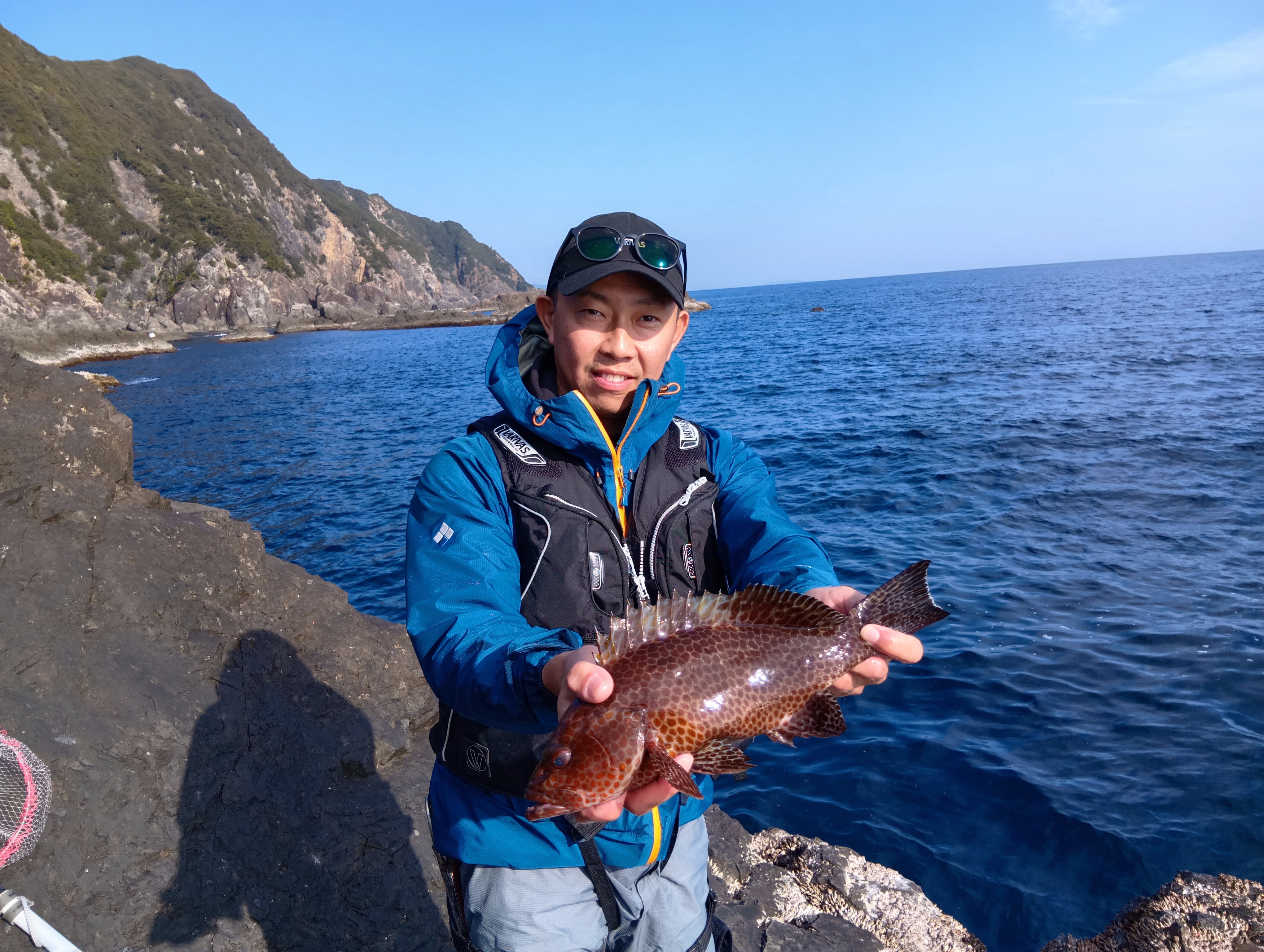 今月2回目の磯釣りは古和浦の国丸様にお世話になり大島に渡礁。水深もあり色々試せる好きな磯に上がる事が出来ました!早速準備して釣りスタート。潮がフラフラとし定まらない。エサも取られない。水深も30m程あり足元、遠投とまずエサが無くなる事を釣りながら探すも全く気配無し。どんどんと棚を変探すがようやくのアタリばカサゴと底まで気配無し。しばらく頑張っていると正面に流れたタイミングで遠投でオオモンハタをゲット。潮がわりを期待するも変化無し。太刀打ち出来ず終了でした。