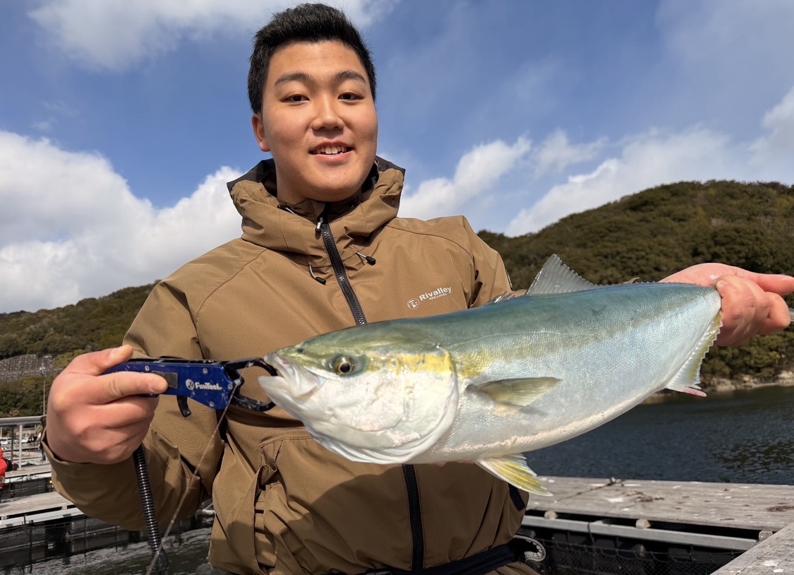 初参加しました会場は迫間浦釣堀センター様でした!!当日は水温がとても低く活性も下がっていましたが、朝方に真鯛がヒットし、エサはマダイイエローを2個練って底ギリギリで置いているとアタリがありゆっくり誘いを入れるとヒット!!針が取れて水面近くでバレました…残念!!釣果は青物1匹でその青物はモエビを0.5号のオモリでゆっくり沈めて、アタリがありゆっくり巻き上げて誘うとヒットしました。ハリスが2.5号と細くいつ切れるか怖かったですが、周りの方の助けもあり何とか青物をゲットできました。