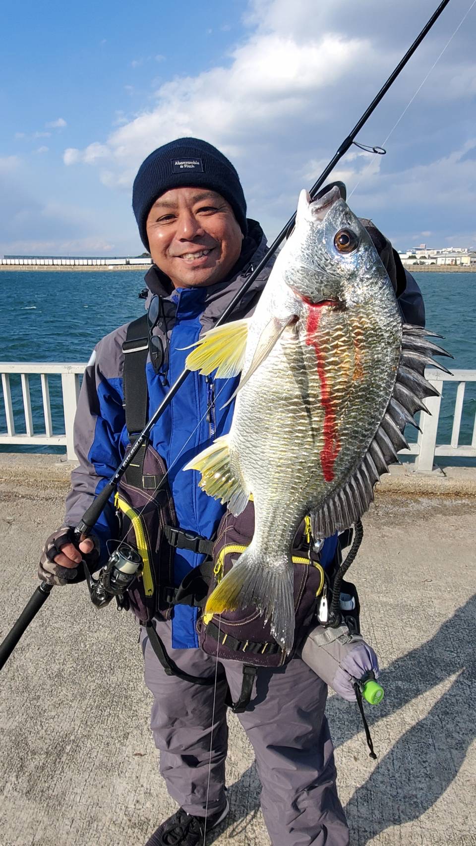 今回はこれからの時期に旬を迎える碧南海釣り公園のクロダイ調査に地元の友人と2人で行ってきました。午前中は私が用事があった為、13時に現地集合。碧南海釣り公園は初めて行きましたが、無料駐車場も広く、真冬ですが多くの釣り人で賑わっていました。ここのクロダイ釣りは初めての為、なんとなくシーバスロッドでラインはPE0.8号リーダー16ポンド。4号のナスオモリにチヌ針3号、ハリス12ポンドでちょっと長めに結び挑戦しました。エサは青イソメの小サイズとカニを準備。流れ込みに軽くキャストし、流しながらアタリを待ちました。偏光サングラスで見ているとすごい数のボラ。ラインにも常にボラが当たっている状態で竿先がプルプル。2時間の調査の予定があっという間に2時間経ち、釣果はボラ数匹。まだ季節がちょっと早いのか周りもボラしか釣れてない。ちょっとだけ粘ってやると今までのプルプルとはあきらかに違う激しいアタリ!少し待ち次のアタリであわせるとなんとか小型のキビレが釣れました!寒い中嬉しい1匹となりました。また挑戦してみようと思います。