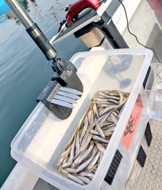 途中から片手外しに挑戦してみるとこれがまた早い!下顎ガッチリ以外であればポンポン外せます!普通のかかり方ならワカサギ外しより早いかも!?練習する価値アリです!