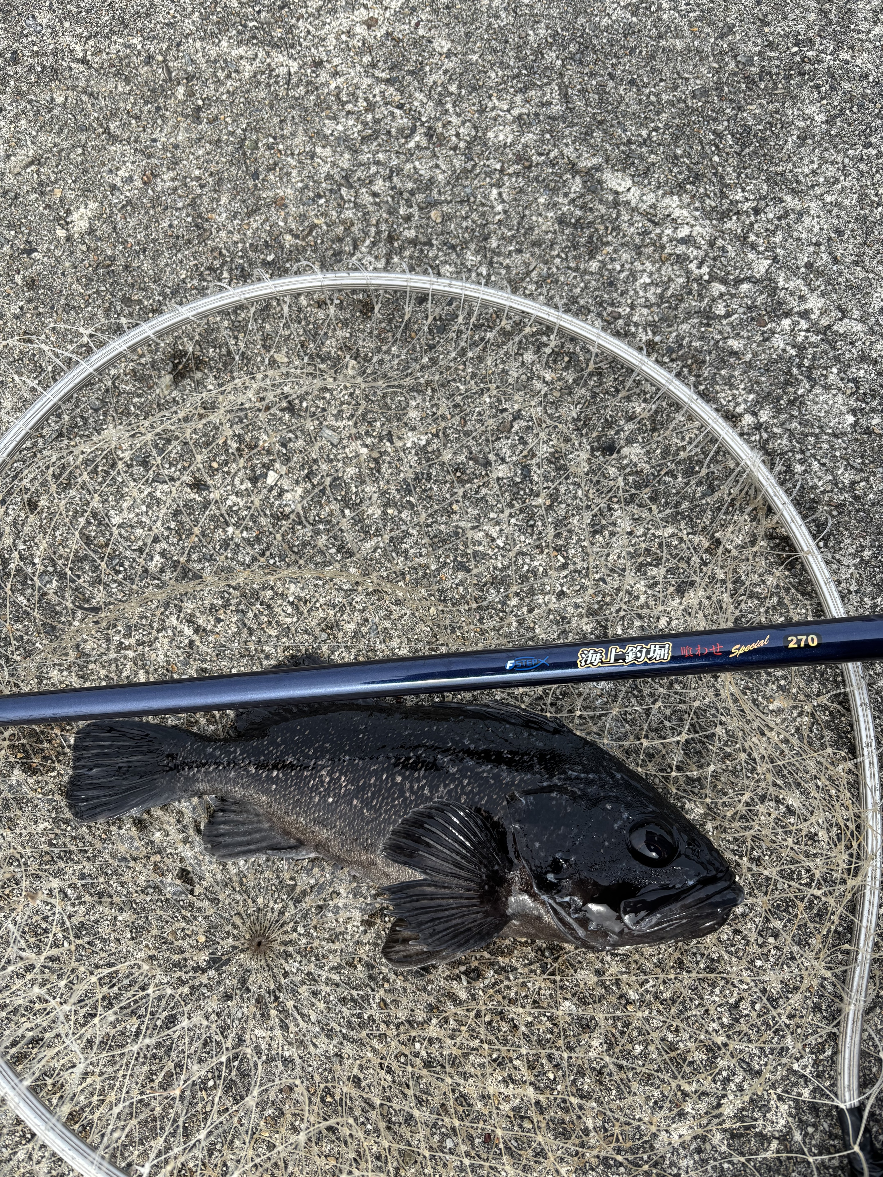 受付を済ませ以前当店K氏が爆釣したという筏のところへウキ釣り仕掛けを入れます。私にとってのここでの当たりエサはアオイソメ。いきなり当たりますがどうも違う様子。すぐにエサを離すので多分入り込んでいるハゼか何かでしょう。とりあえず1時間粘りますが、またかのノーヒット。暖かい方へ寄っているのではと思っていましたが、真逆の考えに切り替え、根魚の好きな日の当たらないところを脈釣りで狙うとヒットいいサイズのソイに心の中でガッツポーズ。次の目標であるヒラメへシフトして、ウキ釣り仕掛にキビナゴをセット。管理人さんが以前釣れていたという流れのあるところを流しますが反応がない。というか仕掛けが軽くてすぐに流れ切ってしまいます。ガン玉Bしかなく、もっと大きなおもりを持っていれば変わったかもしれません。粘りましたが、切り替えてまた真逆の考えで日の当たる静かな方へ。ゆっくりとウキが入るので思い切って合わせるとグングンと叩くような引き。一瞬ヒラメを期待しましたがすぐに見えてきたのは黒い姿。徳障害物らしいものがないのですがまさかのソイでした。