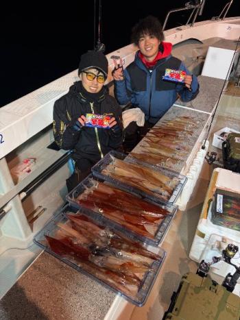 棚がつかめず1杯目までがなかなか遠かったですが、タナが底から2~5m以内でのヒットが多い事に気づき重点に攻めていきました。連続ヒットもあり終わってみれば2人で50杯。ちょうど25杯ずつで並んで竿頭でした!