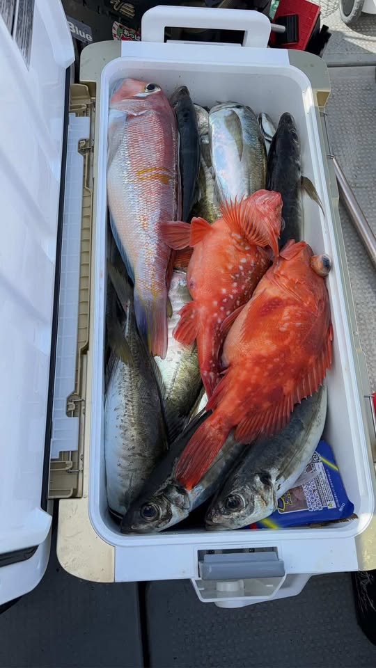 前半の3時間程度で35Lクーラーがパンパン!友人は初めての船釣りでしたが、20匹は釣っていました。