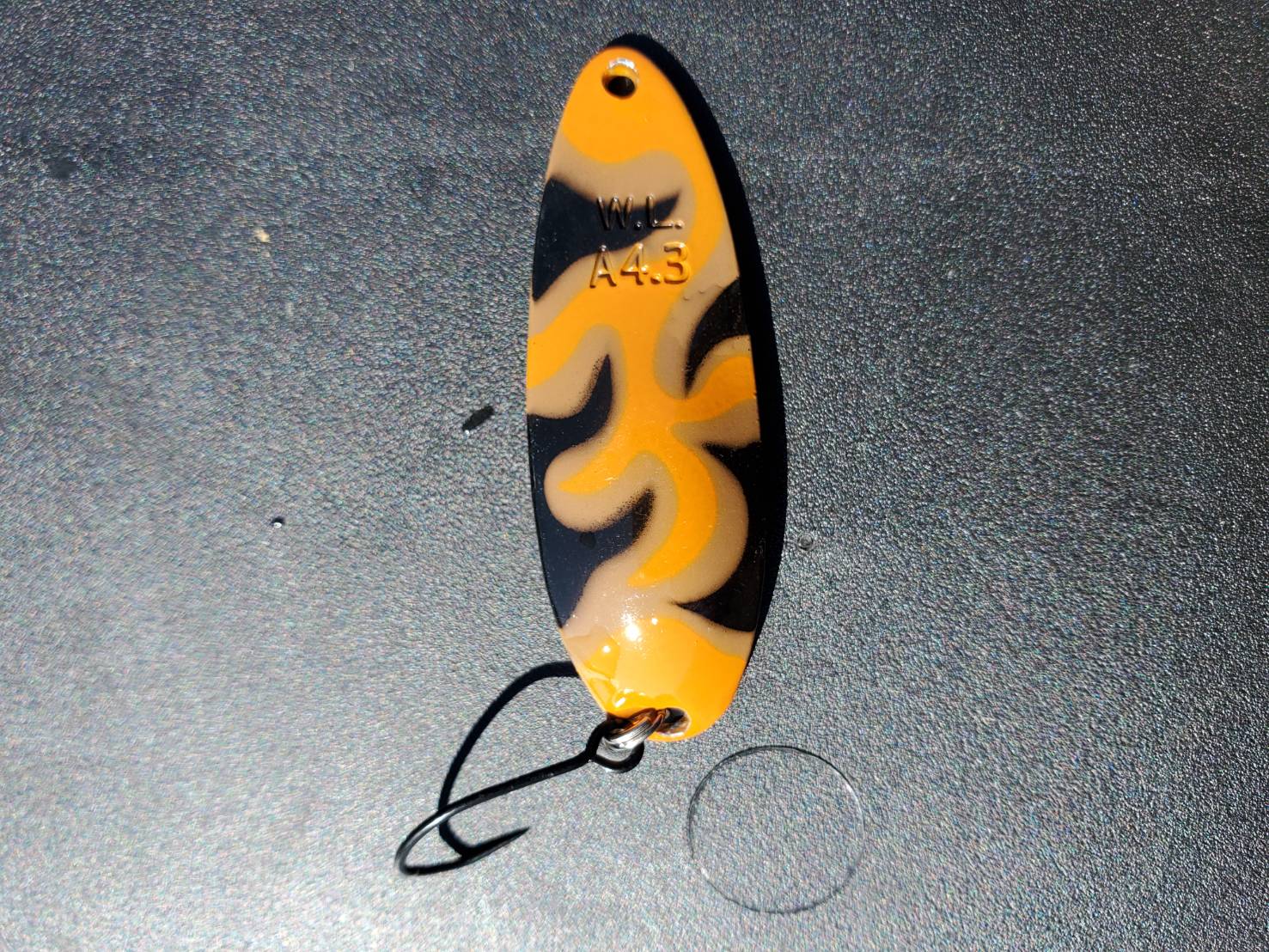 先発はウォーターランドのアルミン4.3g!カラーは普段あまり使わない地味なグリーンカモフラ!