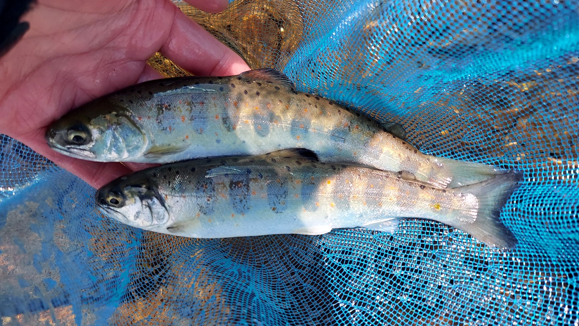 郡上に渓流釣りに行って来ました。今までルアーメインで渓流をやって来たのですが、昨年エサ釣りの体験をさせてもらってとても楽しかったので竿を新調して今年から始めることにしました。本流と支流どっちも出来るようにダイワさんの『春渓硬調70M』を購入しました。仕掛けは天井糸は0.6号、水中糸とハリスは通しでフロロの0.25号を、針はがまかつさんの『ナノヤマメ5号』、オーナーさんの『忍ヤマメ4号』で準備しました。当日は清水さんで雑魚年券を購入。これでシーズン終了まで来放題です。エサはブドウムシを使いました。今回は一宮店の太田君のガイドでポイントを絞り釣行です。最初は本流の上流でやってみましたが、水温4.5℃でだいぶ冷たく天然は動き出していないようで反応無し、本流を転々とし、最後に吉田川に移って放流の残りを狙いました。とにかく風が強く、仕掛を入れても押し戻されたり、仕掛が流れません。風の落ち着く合間に投入して流すと、釣れました!岩の裏や流れのヨレなど緩やかな流れに放流は着くようです。やっぱり楽しい!この水温ではとてもルアーでは釣れないと思いますが、エサ釣りなら釣れます。少し上流側に歩いて移動し、同じパターンでやってみるともう一匹追加できました。感無量!その後は爆風でとても釣りにならないので納竿としました。高鷲付近までは道路には雪はありませんでしたが、朝は雪がぱらついていたのでまだまだ防寒対策は必要です!風邪をひかないように対策をしっかりして行くことをおすすめします。
