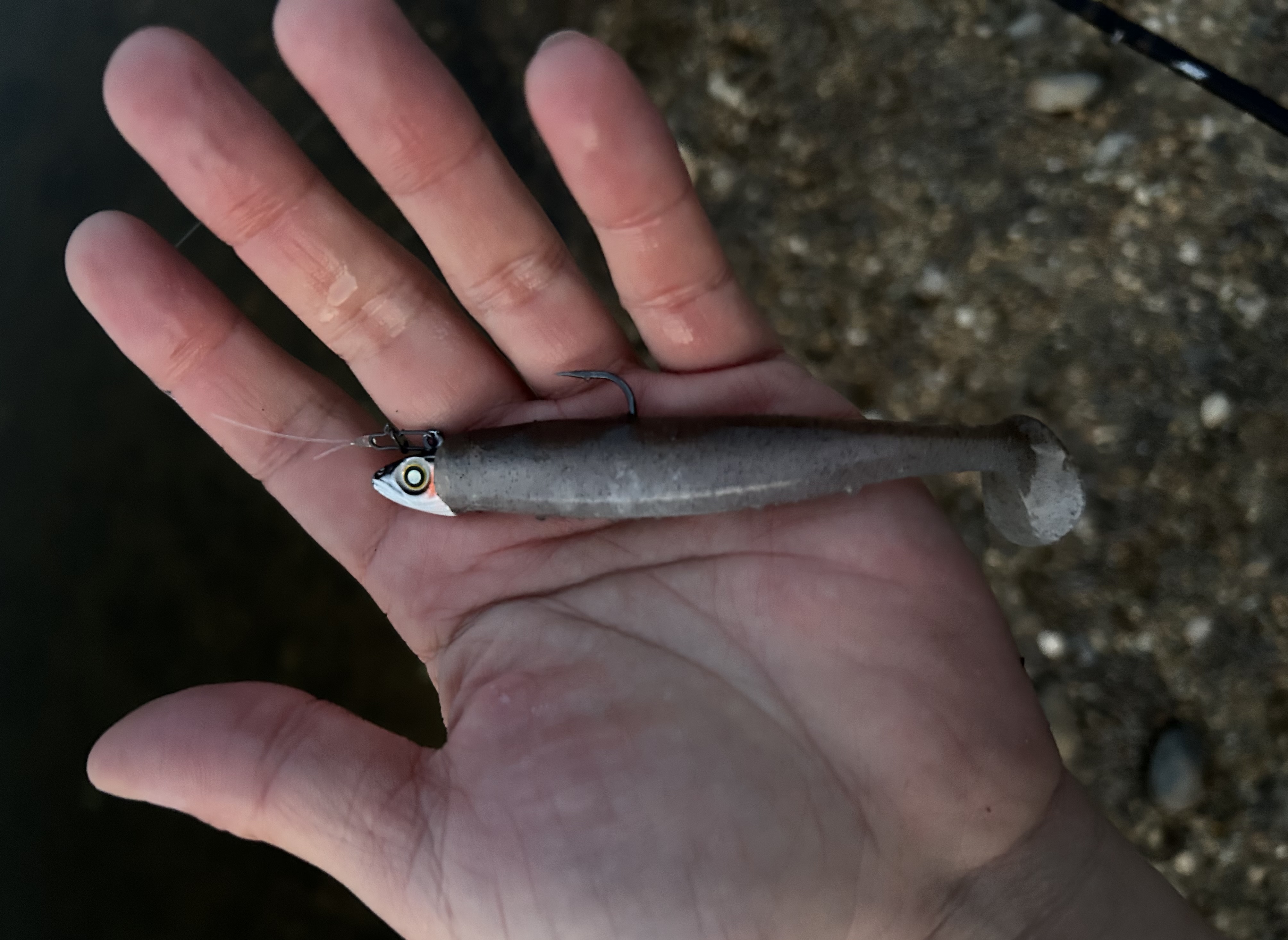 スメルトヘッドにヴァラップスイマー4.2をリグり、投げ倒していると水面を何かが割ったような⁇