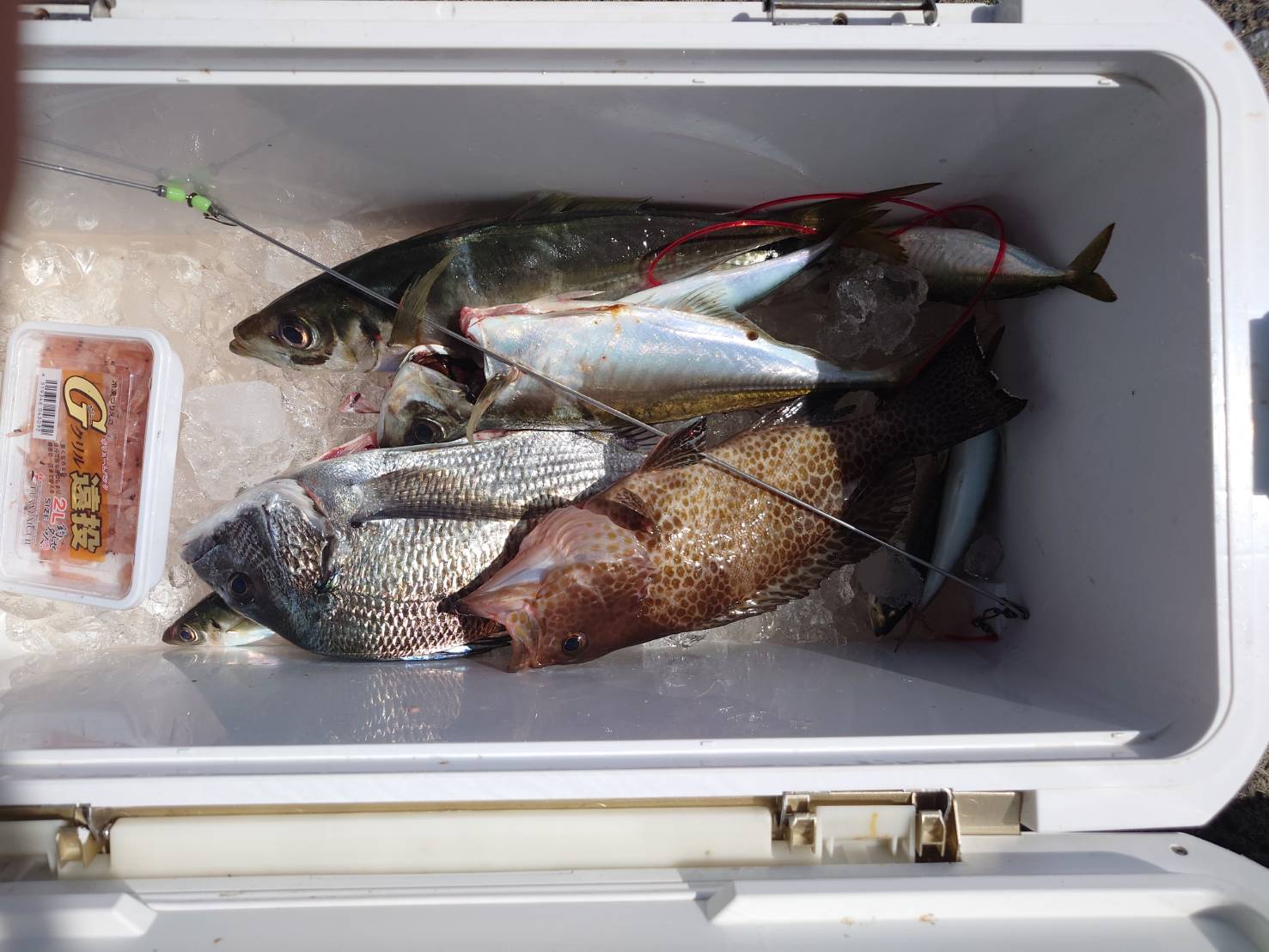 焼津小川港出船の大友丸さんで五目釣りに行って来ました、仕掛けはハヤブサ 海戦吹き流き流し針4号ハリス4号4.5mを使用しました、巻き網漁の影響で本日は渋い様でアタリは少なったですが、小型のアジはコンスタントに釣れました、しばらく釣りしていると、40cmを超える大型アジも釣り上げる事が出来ました、その後はアジやハタ、黒鯛を追加して終了となりました。また挑戦したいです。