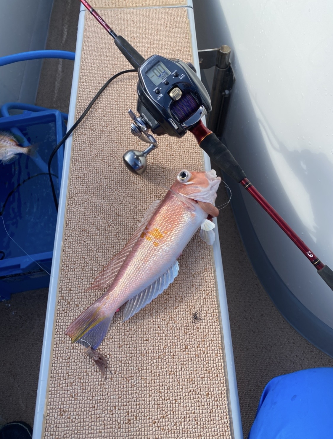 今回はいつものほっぺ毛丸さんで甘鯛釣りに挑戦してきました!以前から船長に「めちゃくちゃ面白いから!」と激推しされていたので非常に楽しみ!結果は甘鯛4匹とデカいレンコ鯛2匹、小型のレンコは10匹以上釣れ、これは非常に楽しい。これで渋いほうという事なので調子がいい日はどうなってしまうのか。水深は100m前後でPEライン1.5号にオモリ60号、天秤35センチに市販のアマダイ仕掛けハリス4号を使用しました。初挑戦だったので釣り方はオーソドックスに底をオモリでトントンしてから50cm〜1m底を切ってアタリを待ちました。アタリは水深もあるせいかギリギリ手元にくるぐらいの小さめのアタリが多かったです。ほっぺ毛丸さんは4月からマグロが始まり、また秋からアマダイも出船するようですので皆様もチャレンジしてみてください!少々コツはいりますがめちゃくちゃ楽しい釣りでした!
