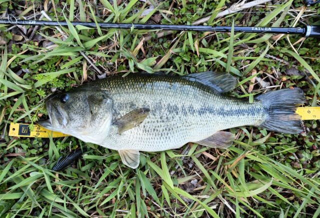 春のビッグバス狙いに行って来ました!帰省の空き日に朝9時スタート!前々日の雨で増水&濁りがあり雰囲気良いものの…色々ルアーをチェンジするがノーバイト…。その後も時間が過ぎるもアタリ無し…。夕方16時過ぎいきなり風も吹き出す!沈み蟲3.2inにネイルシンカーを入れ少し風に負けないようにしてズル引く!ズル…ズル…!?ステイさせ…ズル…ズル…!すると…!?コンッと明確アタリ(≧▽≦)渾身のフッキングも決まり重量感あり(☆▽☆)54cmプリプリバスGET(。•̀ᴗ-)✧16時半!1日粘った甲斐がありました(。•̀ᴗ-)✧