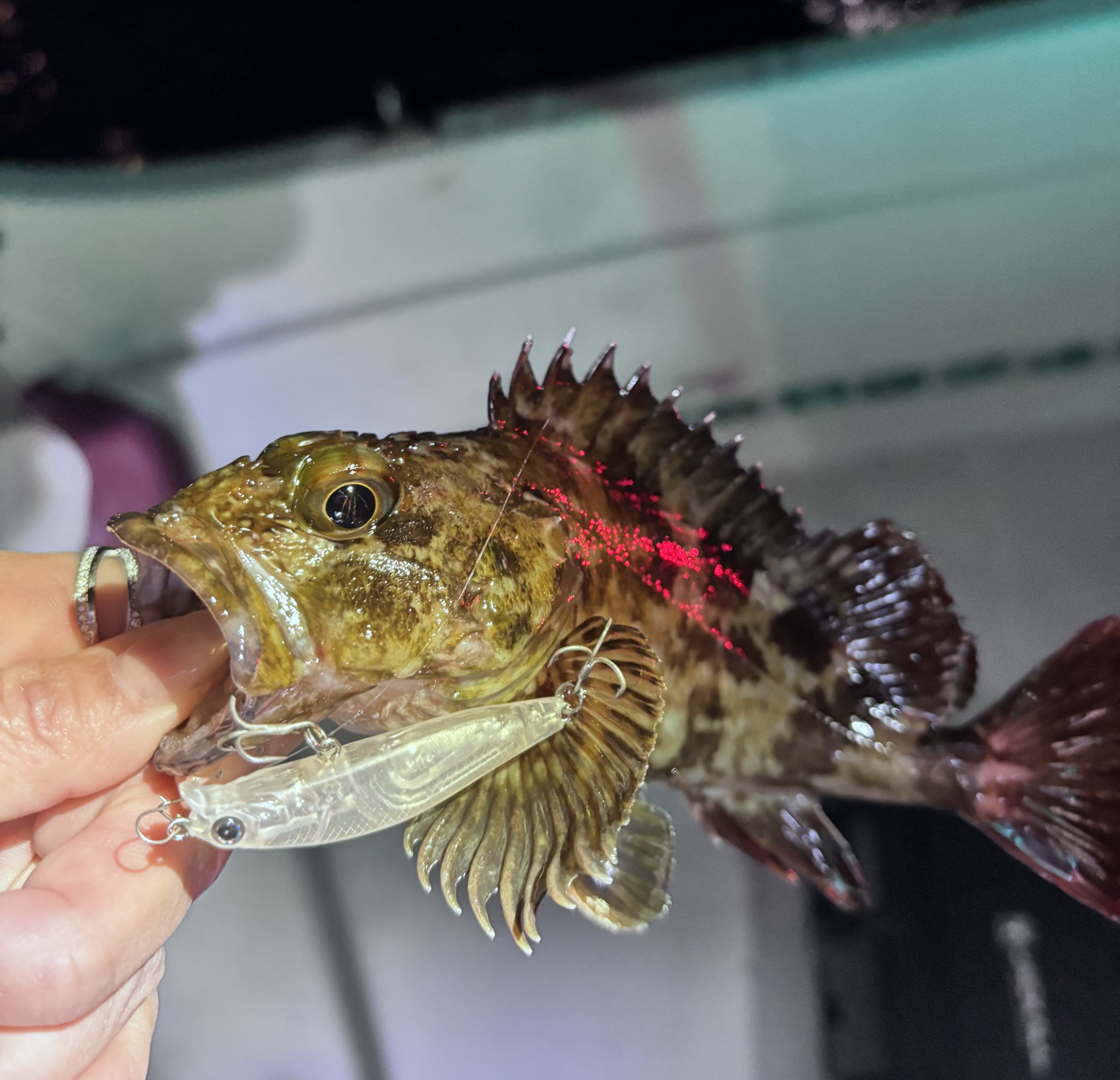 海太郎アメミノーssで超デットスローでさぐるとカサゴがHIT‼️ひたすらカサゴが釣れ続け、竿が大きくしなりドラグが出されます!これは本命か?と思いましたが良型カサゴ!バチも少量湧いていたのでシーバスも狙ってみますが痛恨のバラし。カサゴがサイトで食いあげてきたりなかなか楽しい釣行になりました‼️