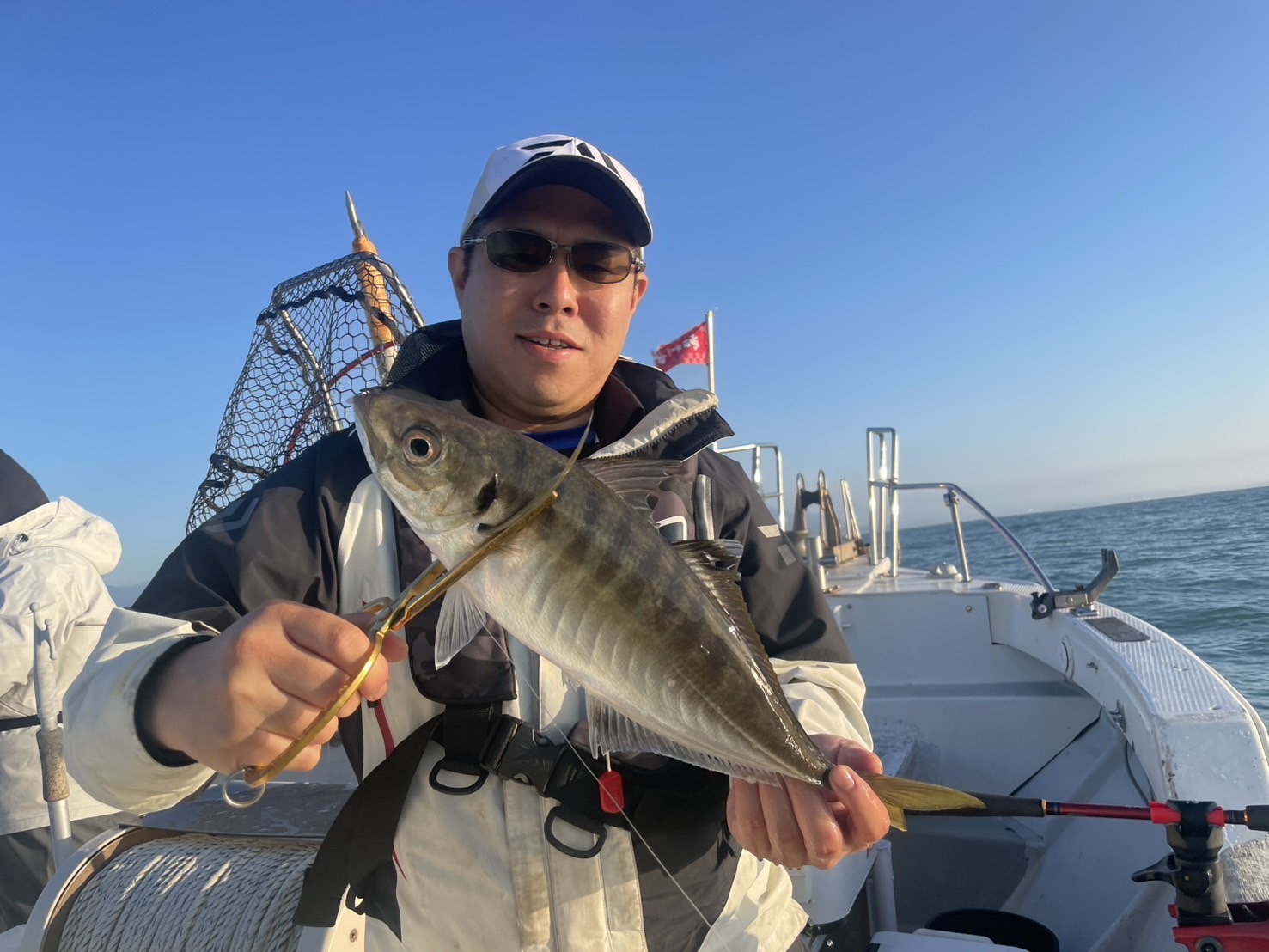 すぐに釣れるかと思いましたがなかなか厳しい…ミヨシではポツリポツリと上がっています。仕掛けを変えたりしゃくり方を変えたりあの手この手を試してなんとか拾い釣り。