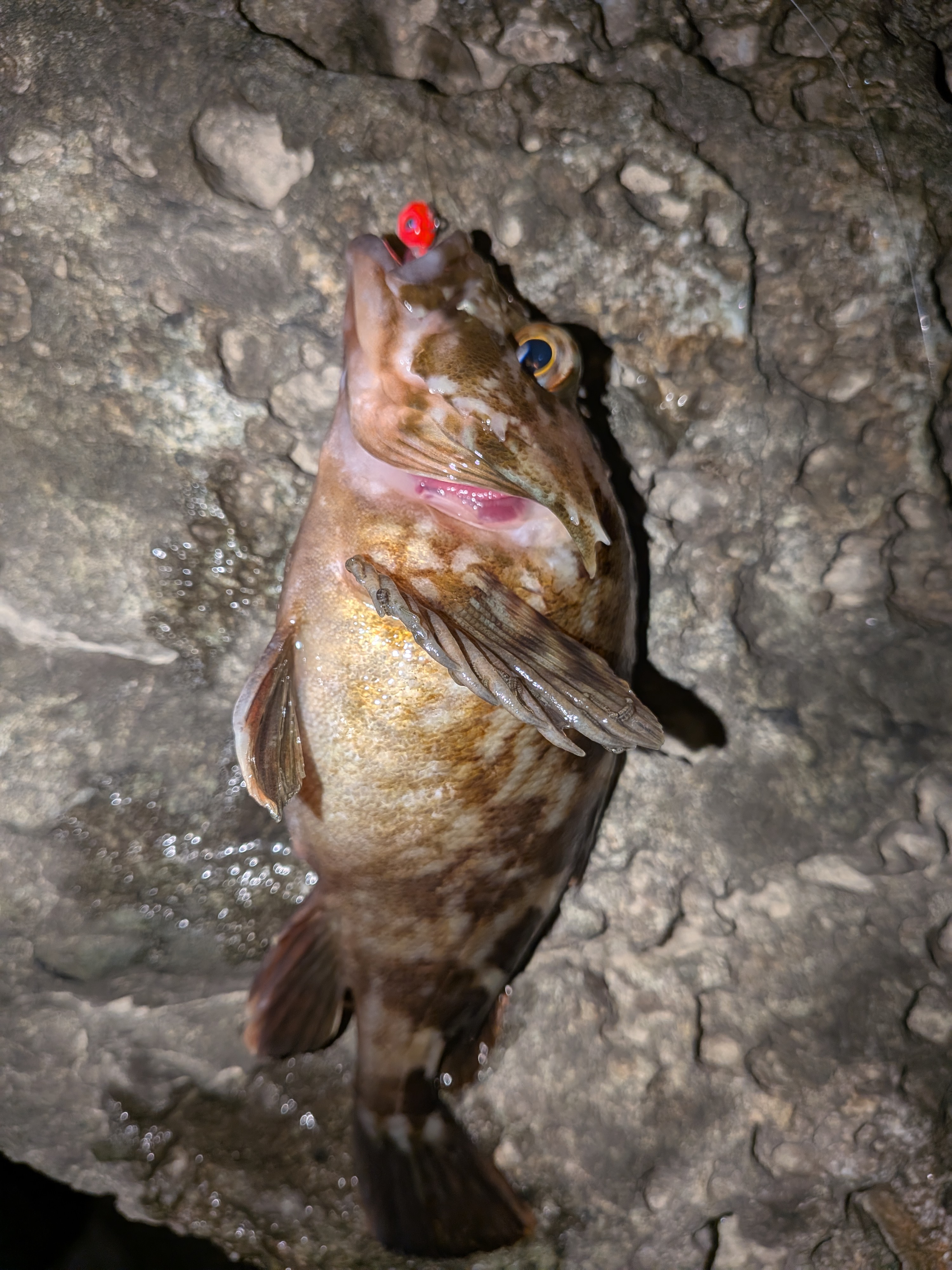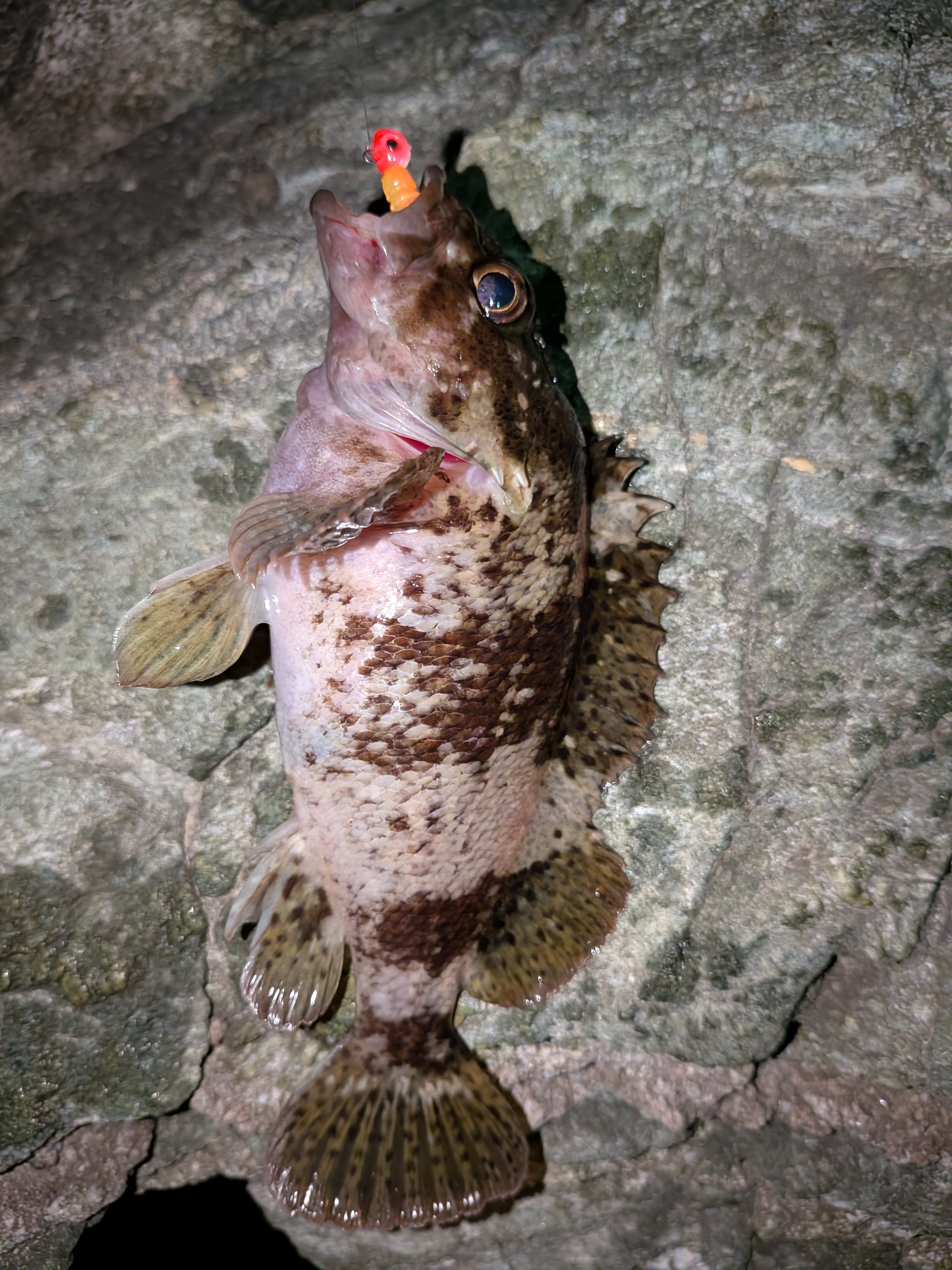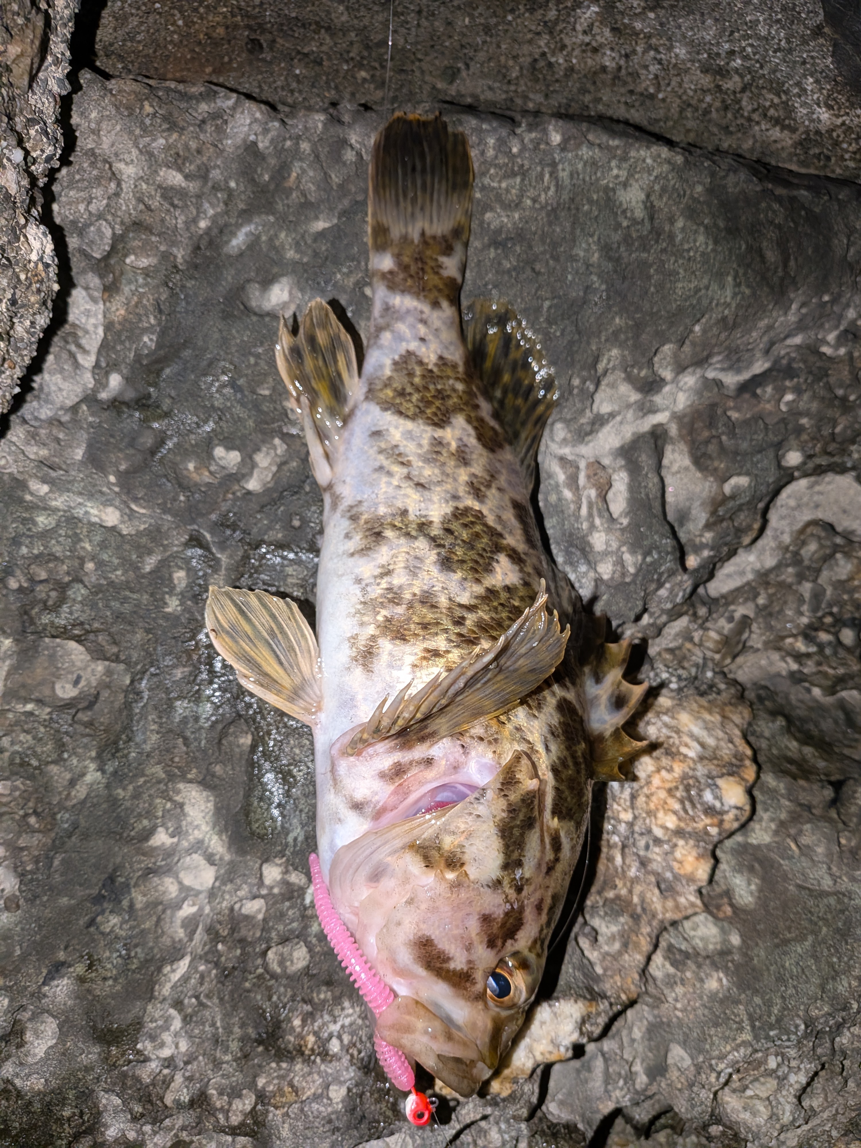 おぉきたきた。巻いてるワームにググっときて見事ヒット。チビッコながらもガシラをGET。その後も同パターンでソイとタケノコメバルを釣って根魚3種盛り。後はメバルを追加して…と思いましたがそうは問屋がおろさず、これにて終了。