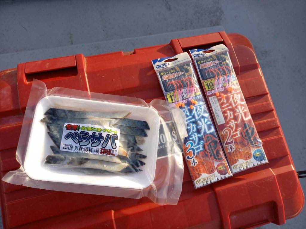 本日使用したエサはペラサバ。幅1.5㌢長さ10㌢ほどに細長くカットしてあり、厚さも2.5㍉ほどにしてあり水中でヒラヒラと舞いアピール力◎