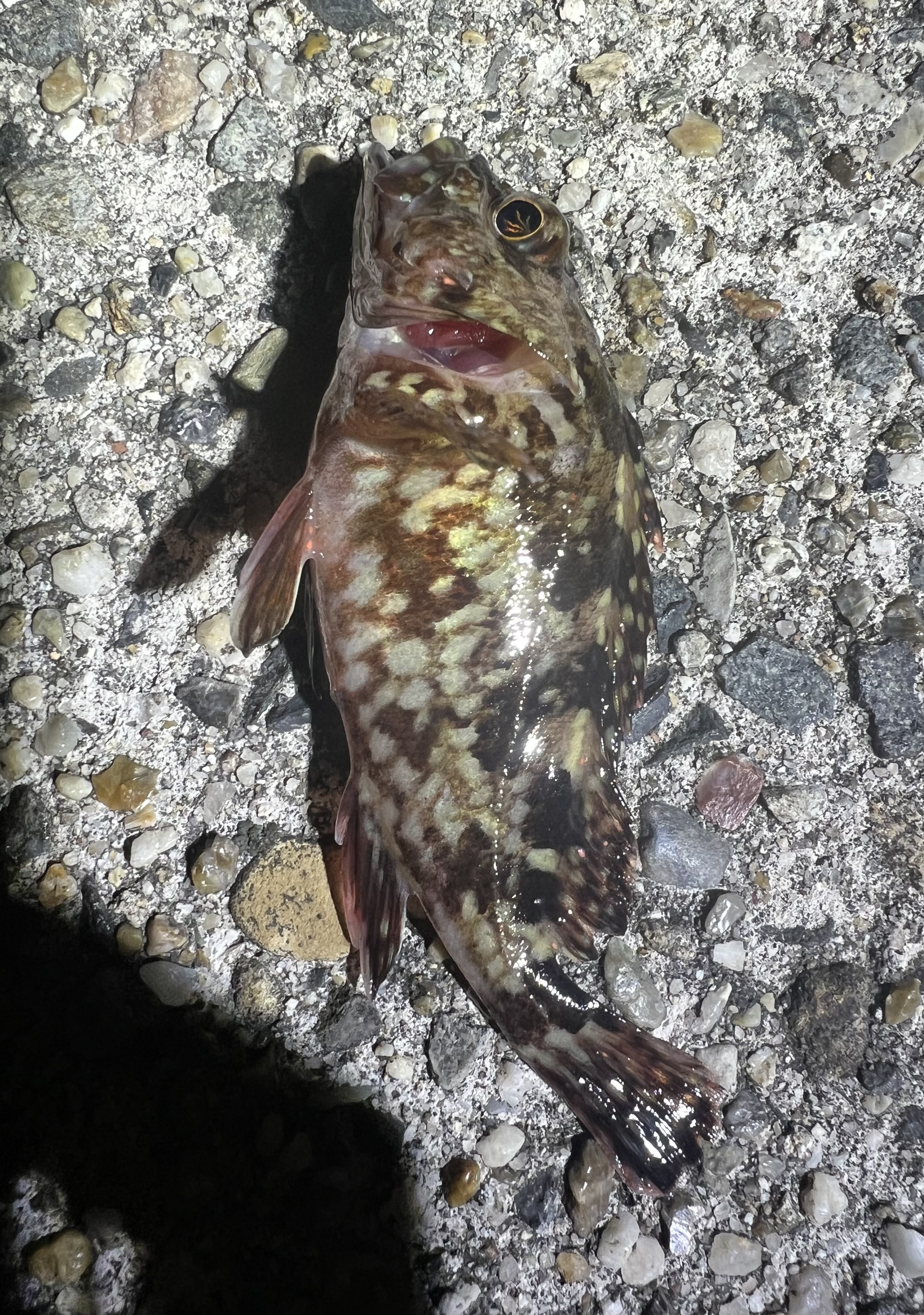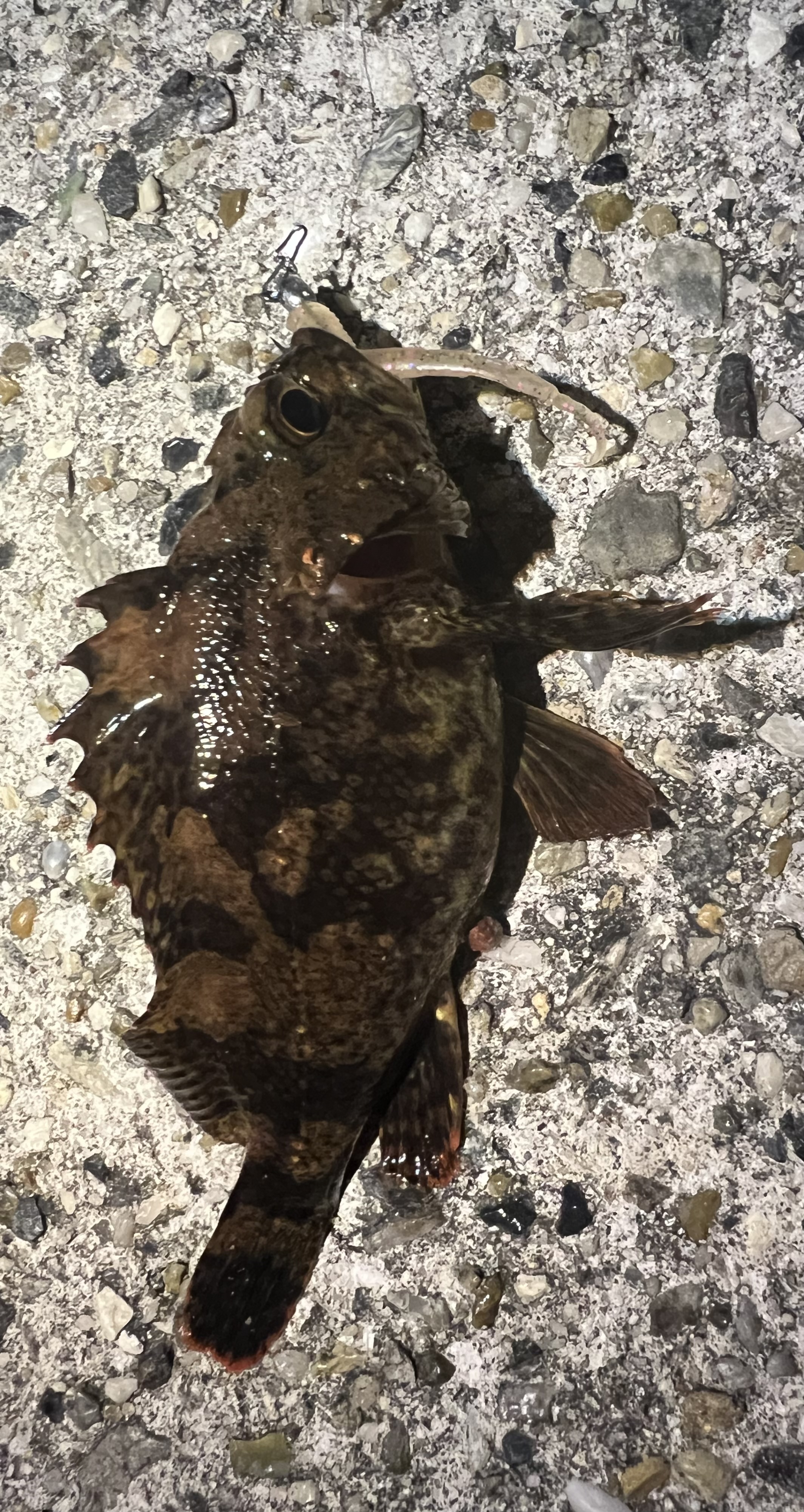 この日もメバルを探して知多半島に釣りに行っていました。この日は風がなくかなりの釣り日和!かと思われたのですが前日の大雨と風で海は激にごり…水面にボラがかなりいるくらいで魚っけはまるでなし。水面を除くとバチがちらほらと浮いていますが潮は全く流れていないよう。しかたなく漁港内に移動し敷石の付近や明暗部にワームを落とすと、元気なカサゴが遊んでくれました。ジグヘッドは最初はチョコヘッドミクロの1.5gを使用していたのですが、反応が悪かったため0.6gにおとしてボトム付近でダートアクションさせるとよく食ってくれましたよ!ワームはくにゃーんの遊オリカラかっぱあみせんを使用しました。