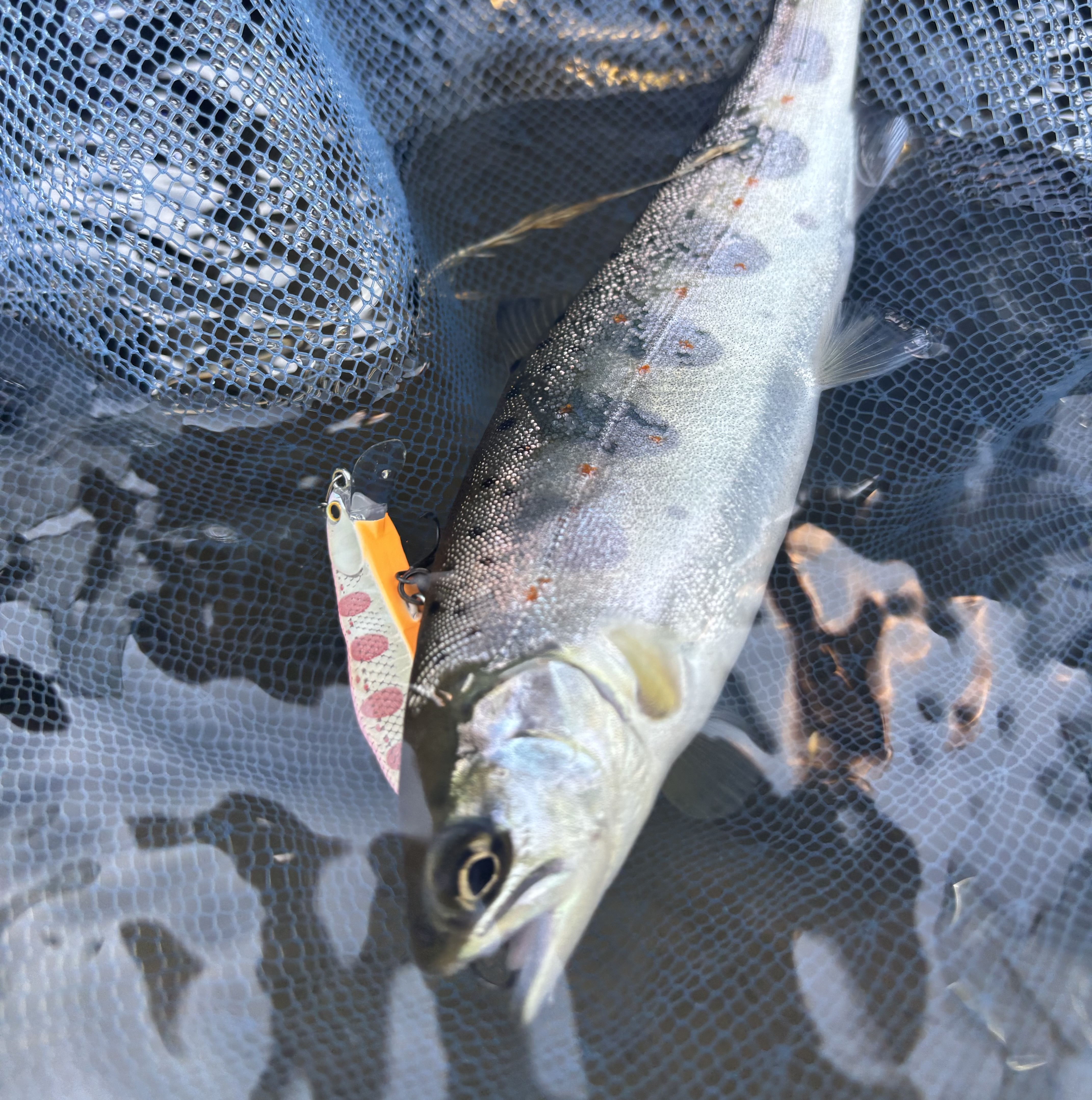 アマゴを釣りたい!と言うことで行ってきました長良川本流!川のコンディションは良いとの事!がしかし、日曜日という事もあり入りたいポイントには先行者が…チェイスはあるもののあと少しで見切られる。厳しい状態が続き時間だけが過ぎ、ポイントを点々と気づけば4時間経過…人がどいて入り直したタイミングでメテオーラ45で初のバイト!可愛いアマゴをGET!その後すぐHIT!さっきより強い引き!25cmないぐらいの良型でした!その後は増水したのもあり終了。思ってたより厳しい結果でしたが、いつ掛かるか分からないドキドキ感であっという間に時間が過ぎました!