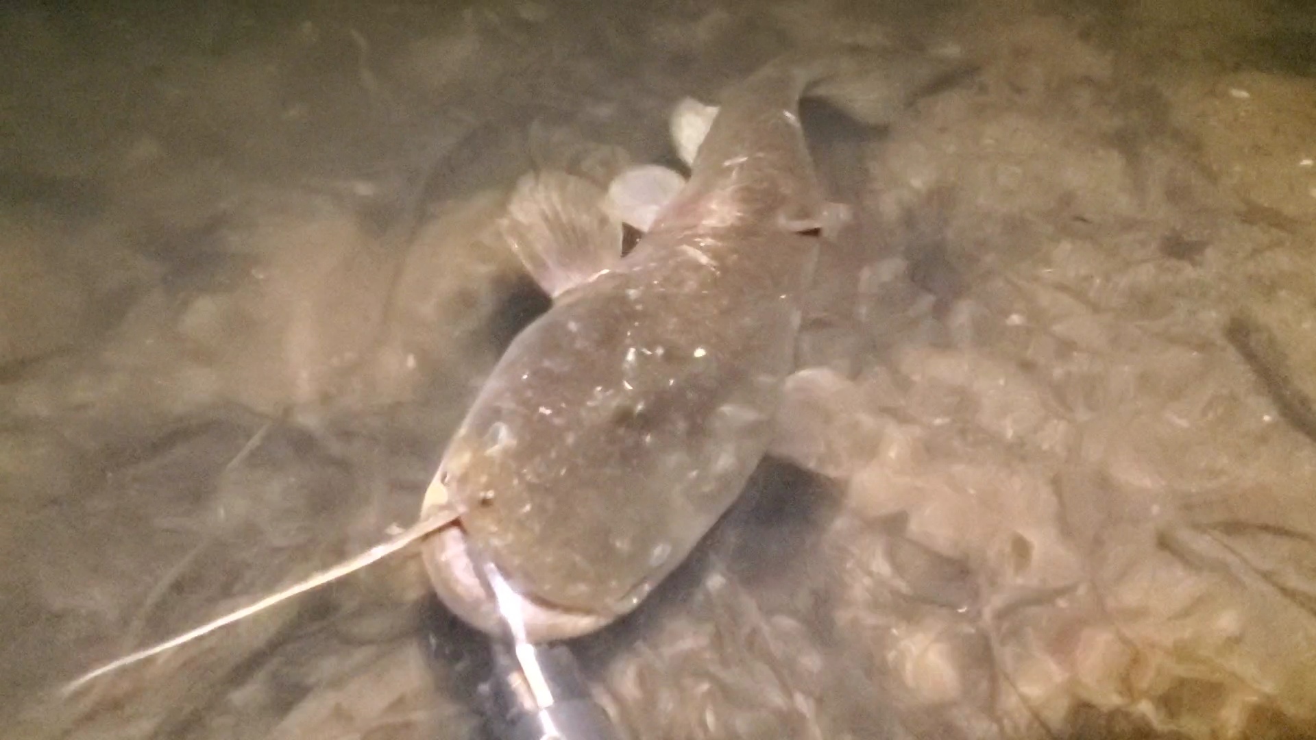 幸先良く50cmほどのナマズGETです。針を外し逃がしに行くと盛山チーフも釣っている!