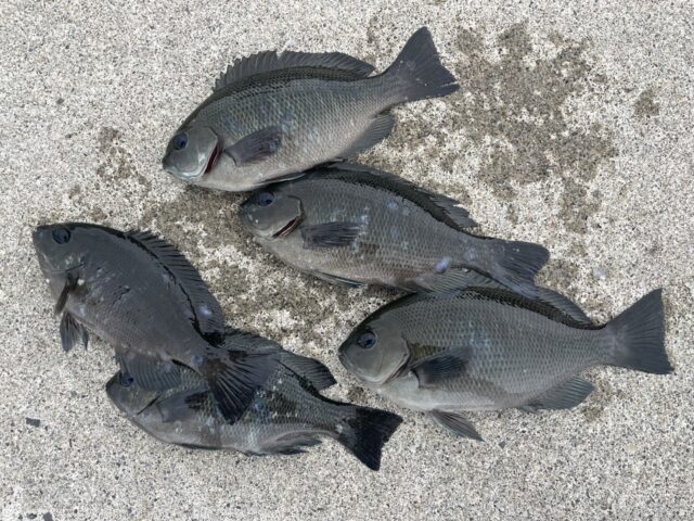 アタリはポツポツ程度でしたが終了間際にグレとアイゴの活性爆発!ネンブツダイは消え仕掛けが馴染んだらグレが一気にウキを消し、アイゴがモジモジ食ってくれます。どちらも素晴らしい引きをしてくれるので超楽しい!アイゴはヒレに毒あるんで絶対素手で触っちゃダメですよ。
