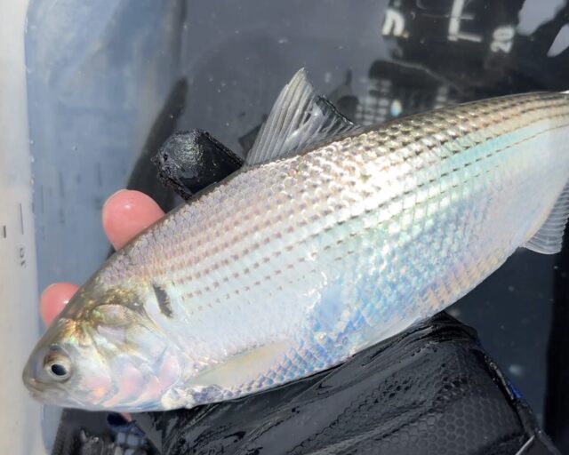 暖かくなってきたので、伊勢湾の堤防調査に行ってきました。朝9時頃に着くと堤防際にはボラやマイクロベイト、サッパがたくさん泳いでいました。最初は投げ釣り調査をしましたが、まだワカメが多く、なかなか釣りがしにくい状況でした。投げ釣りを置き竿にして、エサなしのサビキ釣りをすると、大きなアタリが!