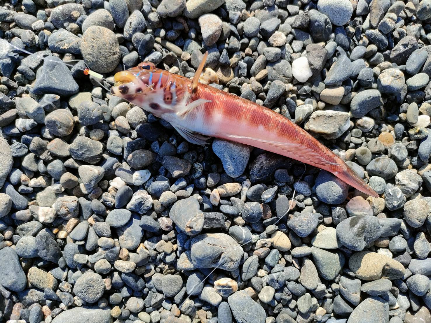 しばらくヒメジが釣れた後はトラギスがポツポツと釣れてきました。そのあとは、強烈に潮が流れ出しどんどんと右へ流れて行ってしまうようになりアタリもなくちょい投げは終了としました。