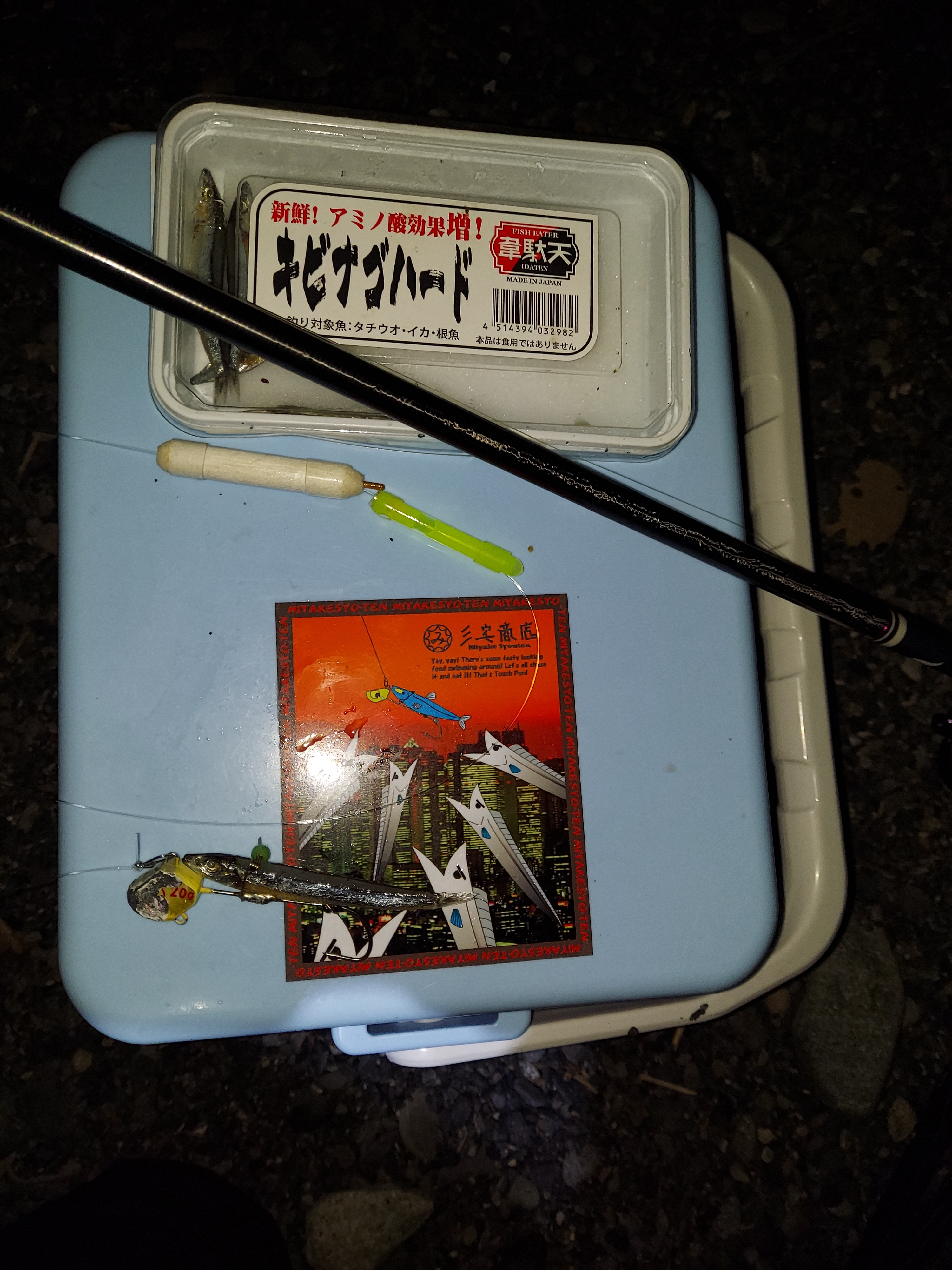 今日はサーフということでタッチポンは20gを選択。更に少しでもゆっくり引けるようにハンドメイドのフロートをケミホタルの下にセットしました。