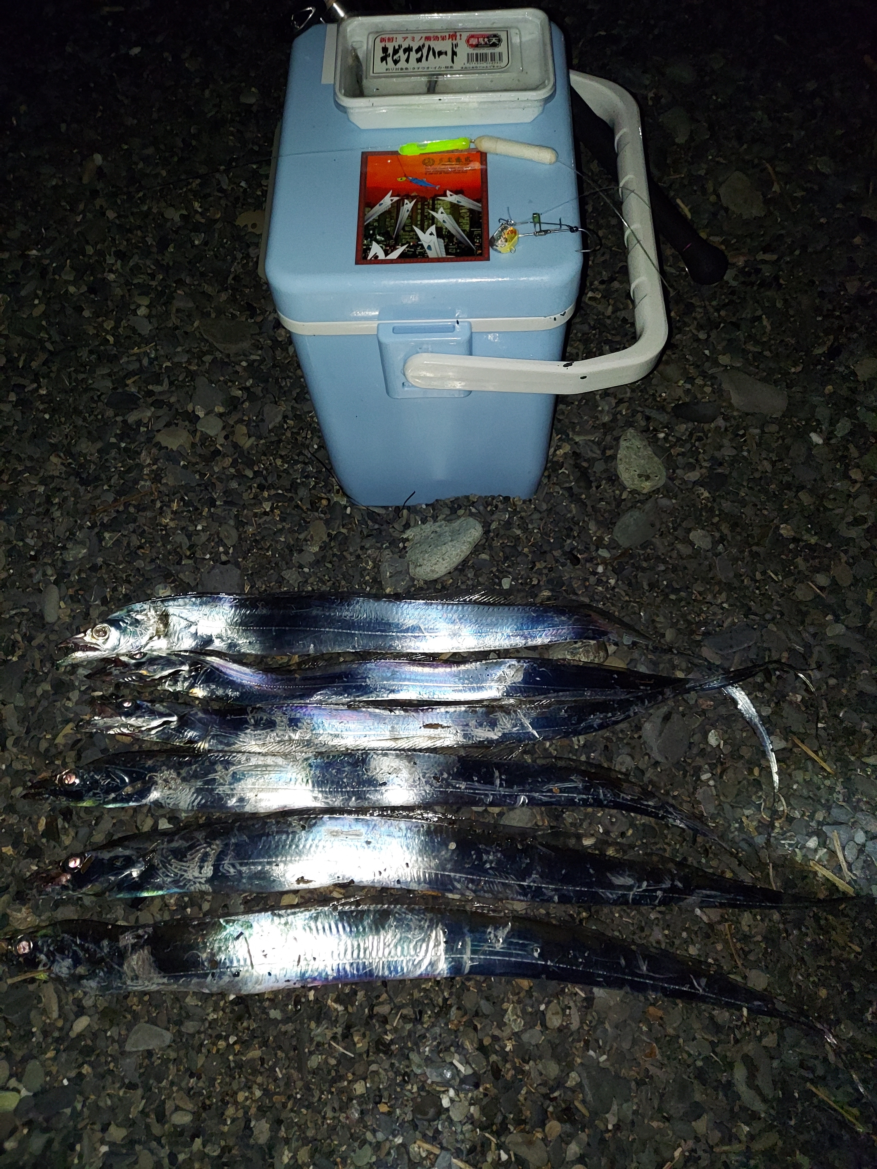 その後もきちんと表層を巻いてこれた時はほぼ毎回アタリがあり、アタリの半分位は掛けることが出来て6匹のタチウオをゲット出来ました😁