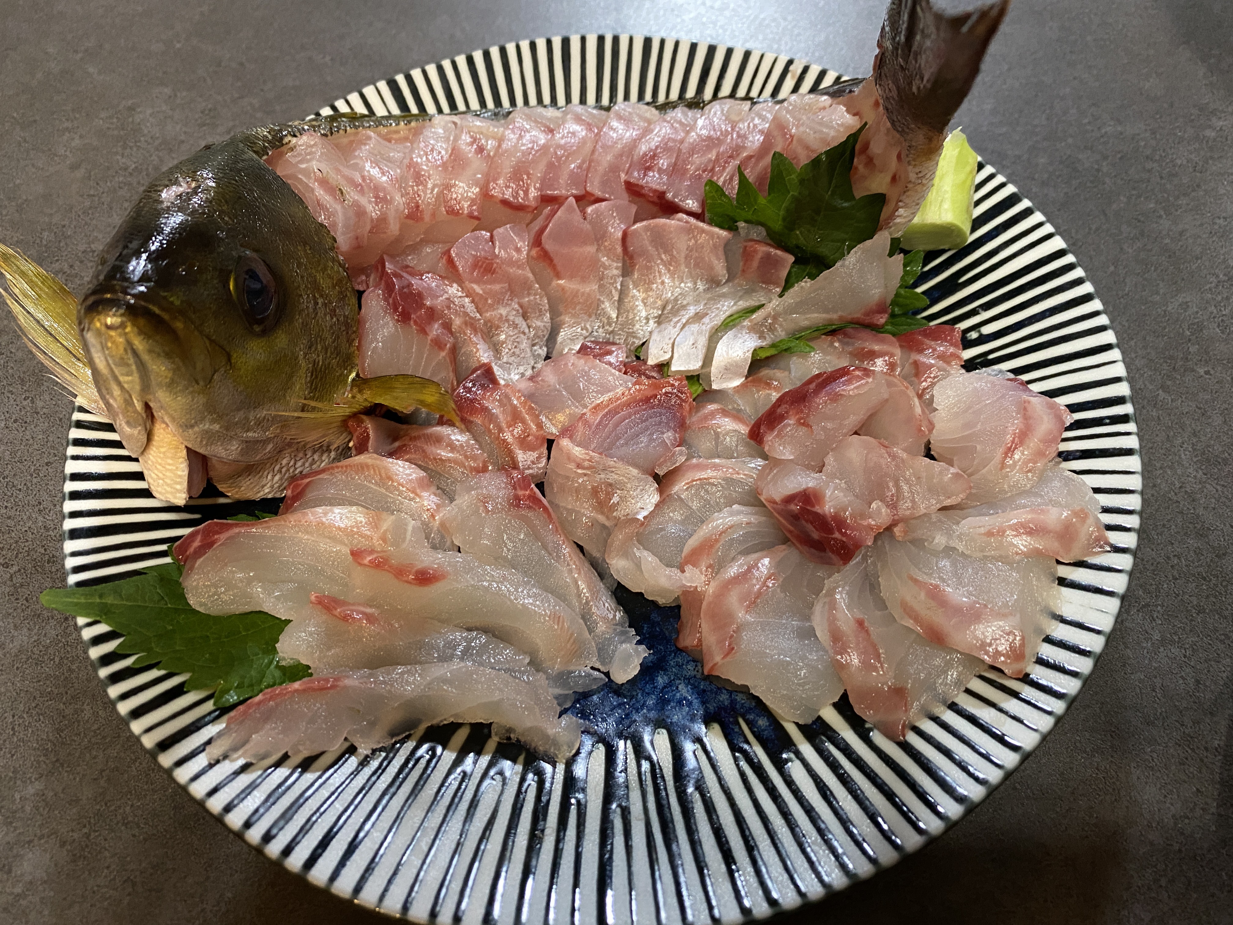 豊浜港出船の大進丸様にお世話になり、旬のイサキ釣りに行ってきました!当日は雨予報。前日の釣果を見ると、イサキは渋く、大きなアジが釣れている様子。どちらが釣れてもうれしい釣りです!早速釣り開始!仕掛けはハヤブサの緑スキンのハリス1.7号にオモリ80号!コマセを多めに撒きながらアタリを待ちます。すると同行者に早速ヒット!ポロポロと釣果が出ていますが、イサキは少し渋め。しばらくするとようやく自分にもヒット!お腹パンパンのイサキでした!その後、アジの時合到来!!しかし自分はバラシてばかりで釣果が伸びず・・・時合が終わり、しばらく沈黙タイムへ・・・10mくらいで掛かるのはソーダガツオばかり・・・仕掛けを2.5mのカラ針付きにチェンジ、一番後ろだけオキアミを付けてみました。そして10時過ぎ、またしても時合到来!大アジが連続ヒット!やはり一番後ろのエサ付きの針に掛かることが多かったです。ここで数を稼いで終了。イサキも混じり、何とかツ抜けでした。釣ったアジは刺身はもちろん、なめろうが美味い!イサキは刺身、炙りが最高!塩焼きでも煮つけでも・・・何にしても美味しい、脂乗り乗りのイサキ、アジ釣りに皆様も行ってみてください!!