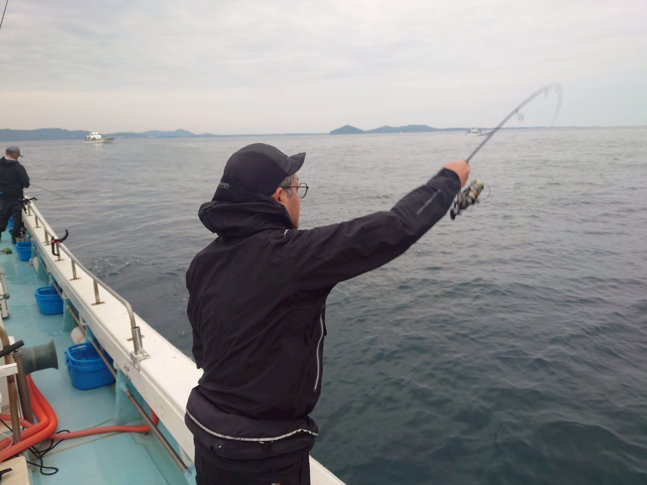 その後、巻き上げの釣りではアタリ出ず、フォール主体の釣りに。スピニングタックルに持ち替えキャストしながら探っていき