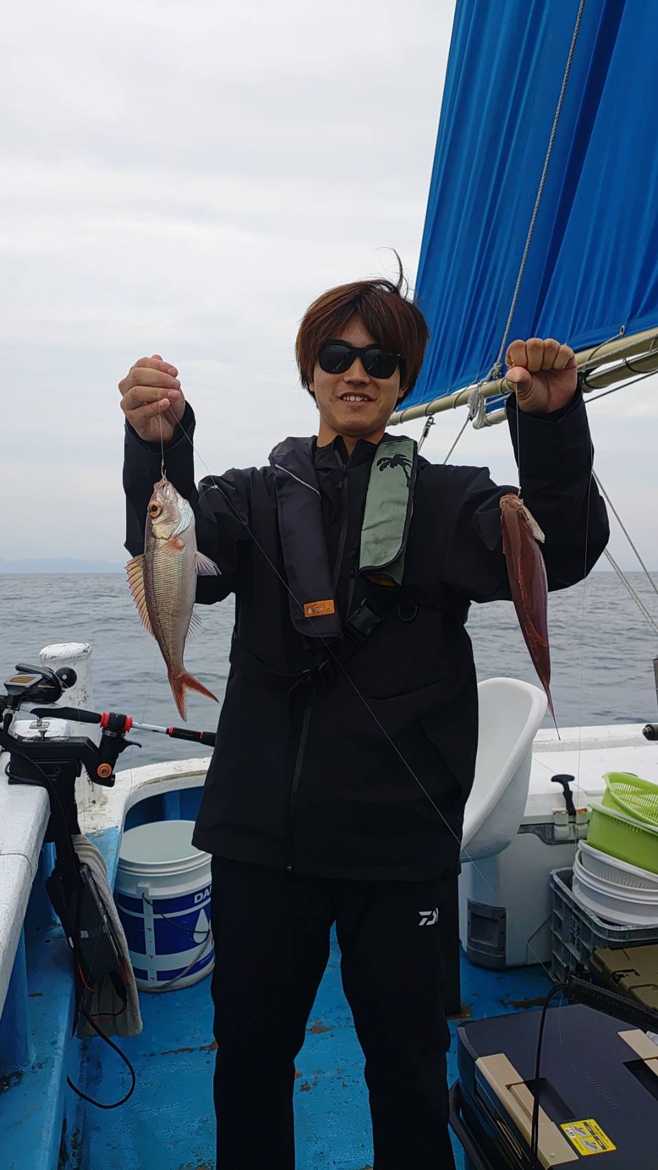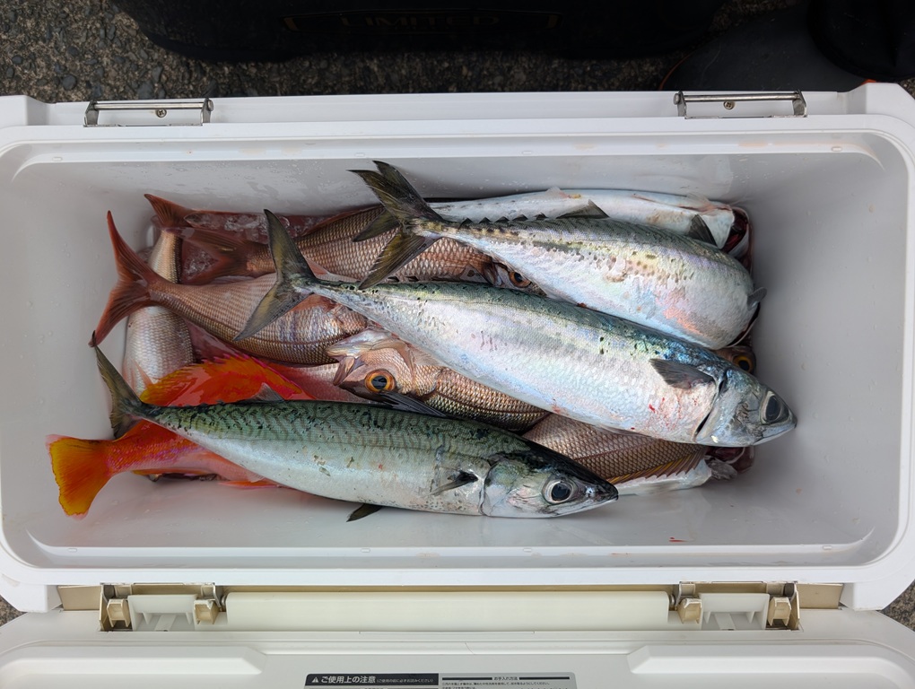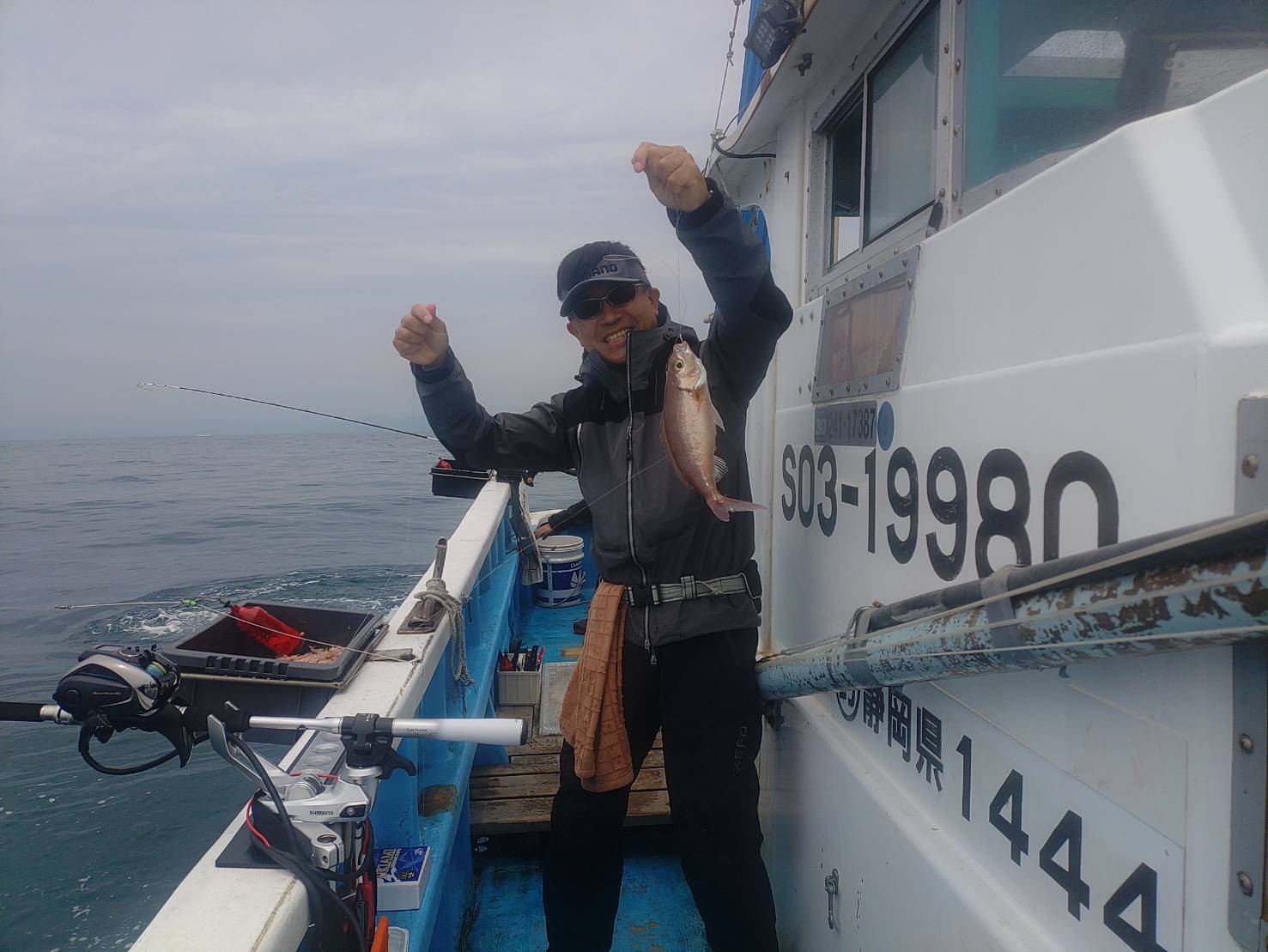 こんにちは~焼津街道店の三浦です。5月29日に焼津港の風神丸さんで石花海のイサキ釣りに行ってきました。当日は朝4時30分過ぎに出船。ポイントには6時前に到着しましたが6時までは待機。6時過ぎてから釣りを始めます。当日は風も波もなく釣りやすい状況でしたが、アタリがない状況が続きます。底のほうにはレンコダイの反応がしっかりと出ていますがイサキ狙いの為、我慢の釣りが続きます。約3時間で本命のイサキは船中1匹のみ。少しポイントを移動しお土産のヒメダイを狙いに変更すると、ヒメダイは入食い状態。お土産が確保できたので本命のイサキを狙いにポイントを移動しますが、本命は釣ることができず納竿となりました。当日の釣果はレンコダイ、大サバ、ソウダガツオ、ヒメダイ、アカイサキでした。本命の石花海イサキが釣れなかったので、6月中にリベンジに行きたいと思います。