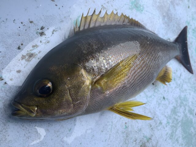 数時間後ようやくイサキヒット!!腹パンのおいしそうなイサキでした!!