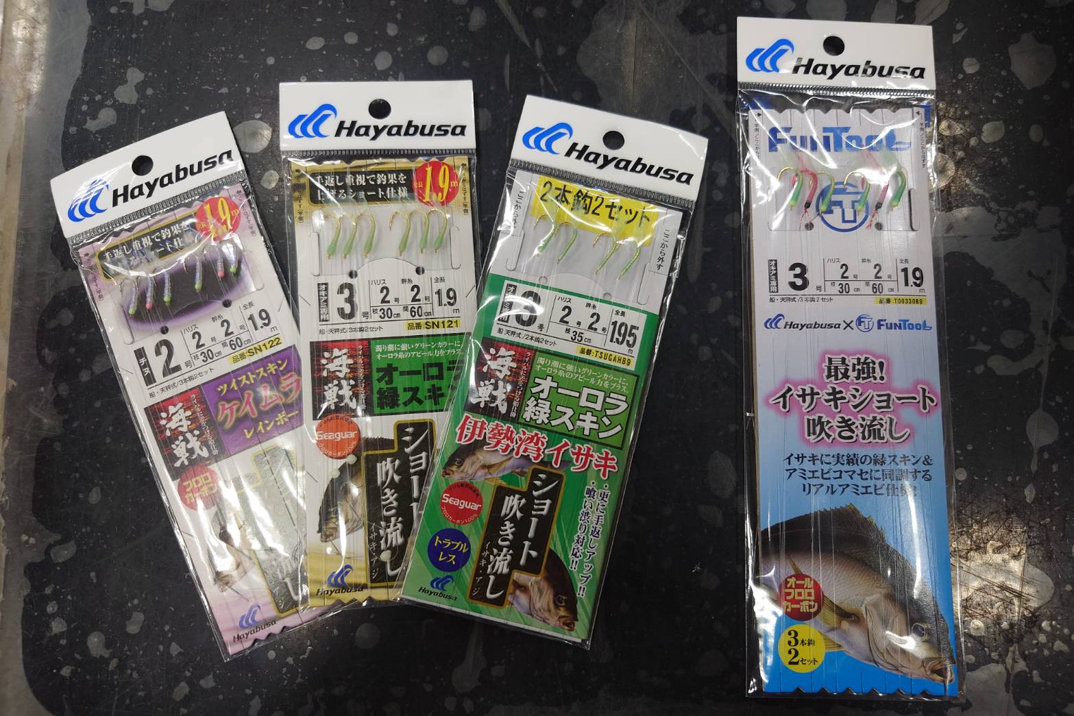 今回の使用仕掛けはハヤブサ×ファンツール 最強!イサキショート吹き流し2号、ハヤブサ船イサキショート吹き流しシリーズ2号を使用しました、メンバー3人ハリスは2号でした。スタートから船中でイサキが上がり始めました!
