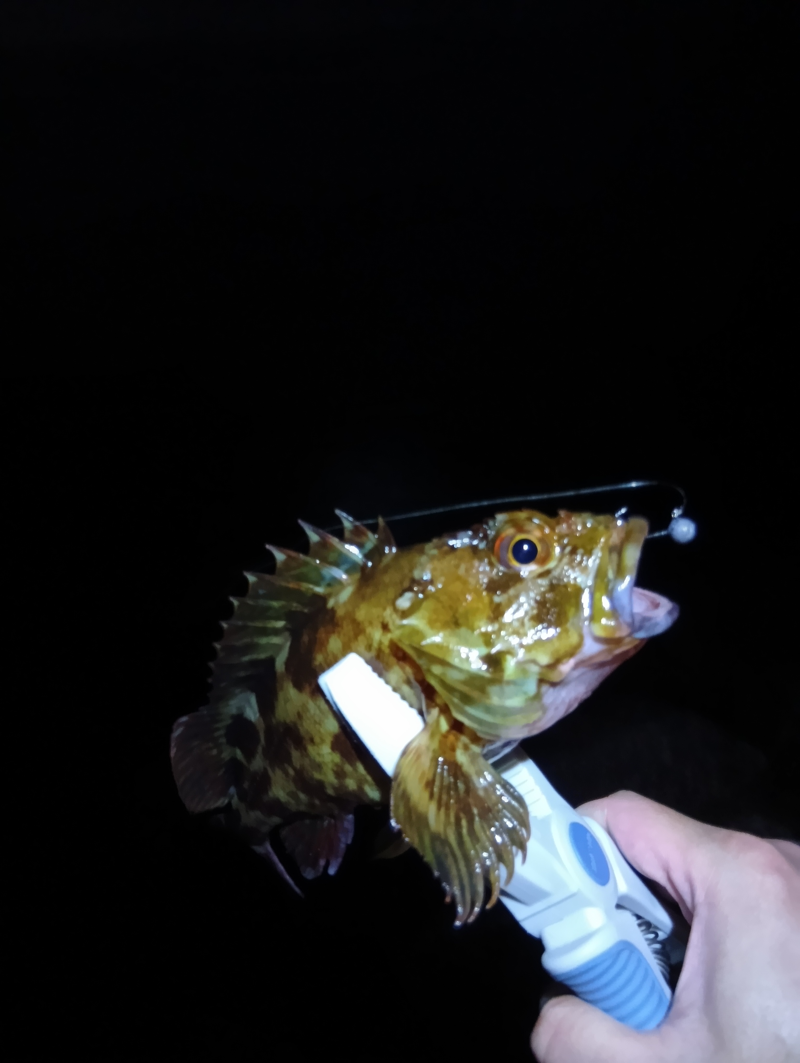 三重県津市の日本鋼管で夜釣りを楽しんできました。グレがつれてきたのでポケベイト、ポケイソメを使用してねらってみました。ポケベイトのサイズは写真くらいの大きさで十分アタリあります。逆に長すぎると餌だけ取られます。1投目から幸先よく20cmに満たないカサゴをGET。そこから場所を転々とし数を追加していきますが、どれも20cm未満。帰ろうかと最後のポイントで25cmほどのカサゴをGET。1時間ほどですがあたりも多くたのしめました。お目当てのぐれが出ず、なかなか巻き餌をしない釣り方や生エサでないと厳しいのか。この日は顔を拝めずでした。。。