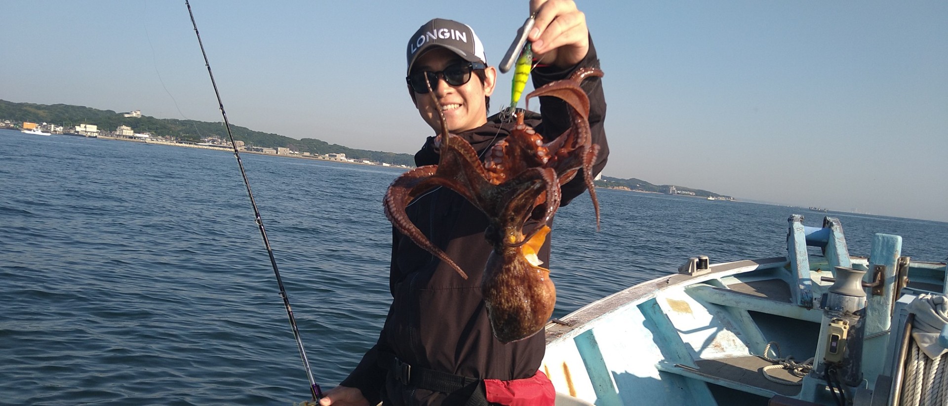 開始して数投目で合わせるとずっしりとした重みが。船中1番のりで良型のタコをゲット!