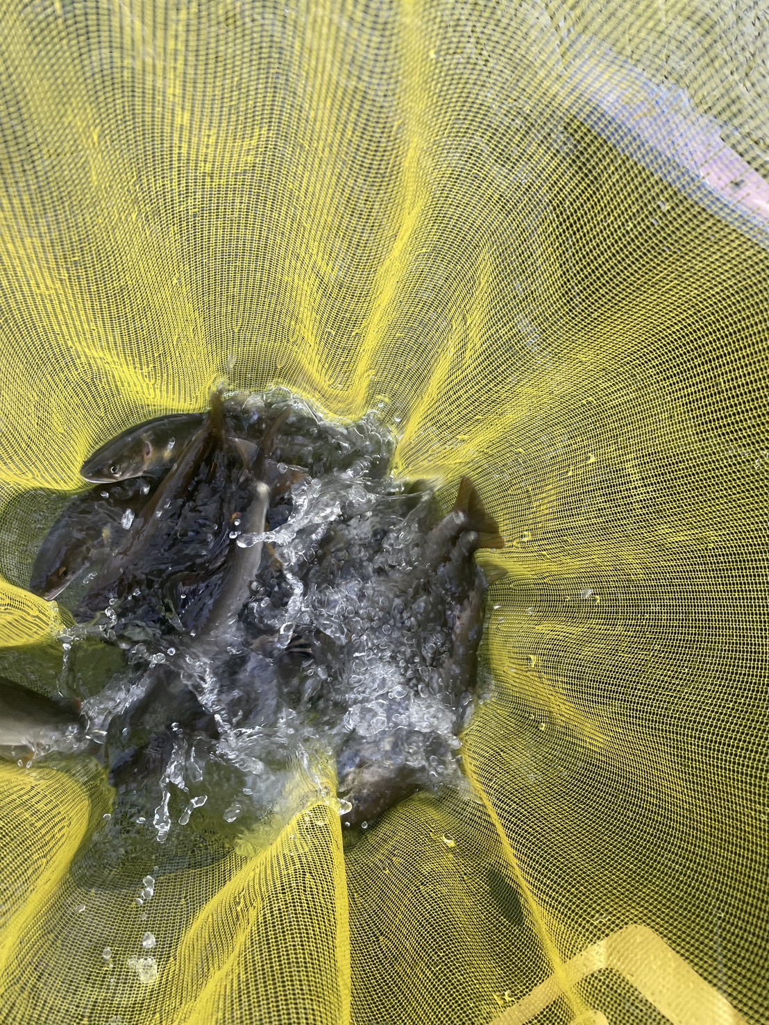 こんにちは~焼津街道店の三浦です。6月16日に和良川に鮎釣りに行ってきました。当日は白川に釣行予定でしたが、増水で釣りが厳しそうだった為、和良川へ変更。のんびり出発して9時前に到着。ポイントを見て回り、釣りやすそうな病院前に入川。開始30分程で掛かるも13㎝くらいの鮎。1時間くらいでポイント移動。宮下橋上下で釣りをしますが2時間程で良型1匹。昼食を食べて梨の木公園に移動するも1時間30分で釣れず。その後ウロウロと車で移動するもよさそうなポイントがなく、16時頃からダメもとで藤村建設前に入川。川に入ると垢ぐされしていない石もある。左岸の流れを探るとすぐに1匹目。その後は順調に掛かり17時40分までに12匹追加して14匹の釣果でした。非常に厳しい一日でしたが、最後は良いペースで釣ることができ楽しめました。