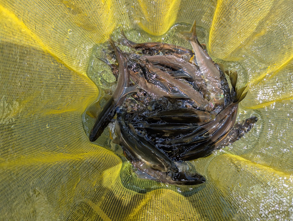 こんにちは~焼津街道店の三浦です。6月17日は白川に行くか和良川に行くか迷いましたが、前日の夕方によい釣りができたので、和良川に行ってきました。朝9時頃から前日の夕方に釣りをした藤村建設前に入川。12時までに21匹。昼食後も同じポイントで釣り続けて23匹追加して44匹の釣果でした。前日よりもサイズはダウンしましたが数は伸ばすことができました。和良川最高に楽しい河川ですね。また行きたいと思います。※タモの鮎写真は午前中の釣果です。