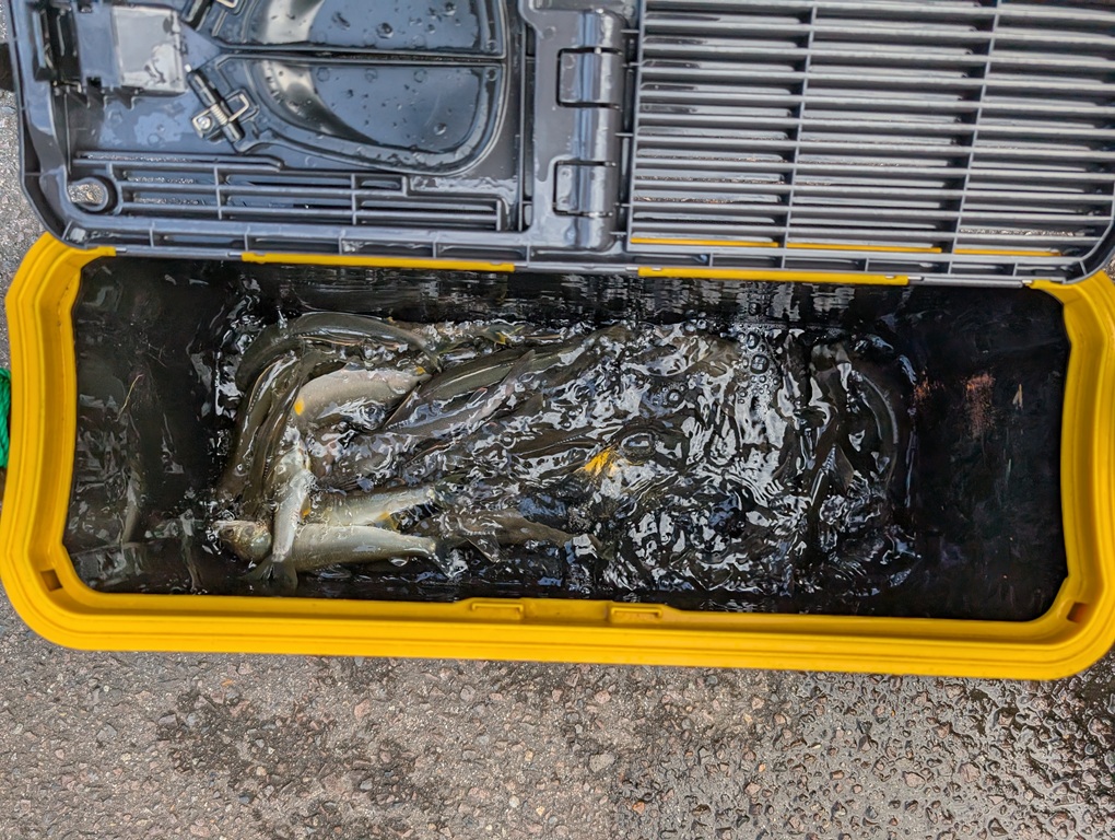こんにちは~焼津街道店の三浦です。6月18日に解禁5日目の白川に鮎釣りに行ってきました。当日は朝8時過ぎに川に到着すると大盛況♪熊崎オトリ店で年券とオトリを購入してポイントを見ながら上流に向かいますが、どこも人が多く駐車スペースがない。かなり上流までいくと人も少なくなり、よさそうなポイントが空いていた為、急いで準備して釣場に戻るとすでに先行者が5名。移動するか迷いましたが上流のトロ場で釣りを始めると開始すぐに1匹目18㎝くらいの黄色い鮎。2匹目も同じサイズがすぐに掛かり、元気なオトリを流れに入れると目印がぶっ飛び、当日最大の21㎝。その後もすぐに掛かり開始15分程で4匹。先行者が釣り下って行ったので、私もそのあとを釣り下りポツポツですが掛かります。午前中3時間で16匹。午後からは下流域の人が少なくなった為、昼食後は瀬を釣り下りますが、午前中に釣られた後なので反応悪く、16時まで楽しみ11匹追加し27匹の釣果でした。平均サイズは18㎝くらいで21㎝も3匹釣れました。今年の白川はヤバいですよ!全体的にめっちゃ釣れてます!!こんなにサイズが揃って数も釣れた年は記憶にありません。川の状態も最高なので早めの釣行をオススメします!しばらくは絶対に楽しめると思いますよ♪
