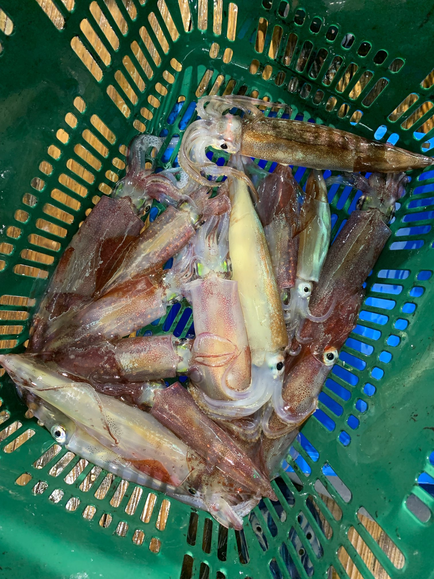この日はマイカ狙いでもスルメイカのようにアクションを強めにして誘った方が反応が良く、最終的にマイカ14杯、スルメイカ4杯の釣果でした。