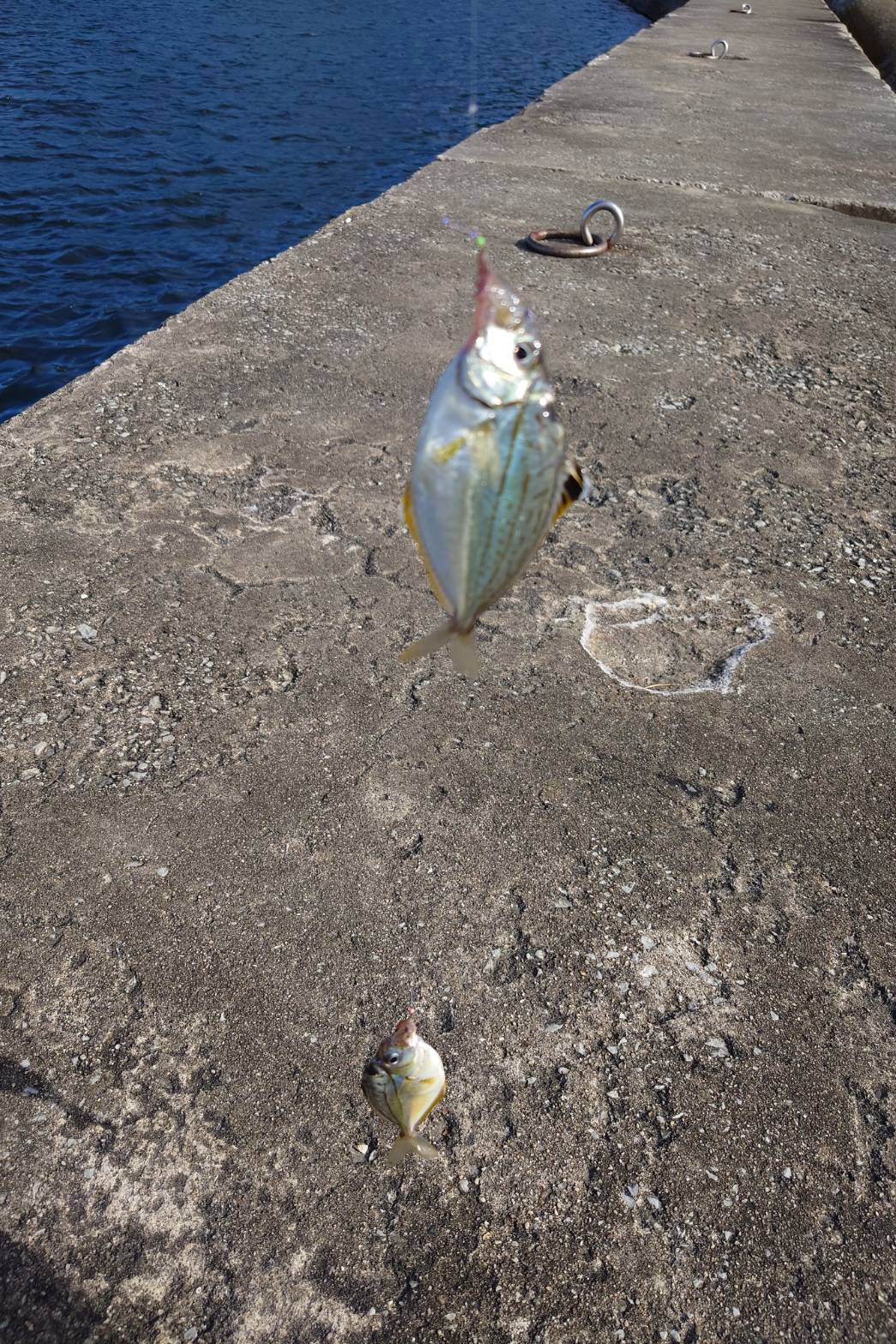 田原方面の堤防にて投げ釣りに行って来ました、エサはイシゴカイを使用しました、仕掛けはササメ針のアスリートキスの3本針を使用しました、堤防に着き最初に投げた所は全くアタリなく、少しずつ移動しながら、幅広い方向に投げて探っていると、アタリがありヒイラギが掛りました、その周辺を探っていると、アタリがあり本命のキスが釣れました、その後も投げればアタリがあり、ヒイラギ、チダイ、キス、アジが掛り、仕掛けが底に着く前にアタリがあり小サバも釣れました、最終的に本命のキスは3匹だけでしたが、ヒイラギ10匹、チダイ4匹、アジ1匹、サバは3本針に全てに掛かる事もあり10匹以上は釣れ、終了まで何かしらのアタリがあり楽しい釣行でした。