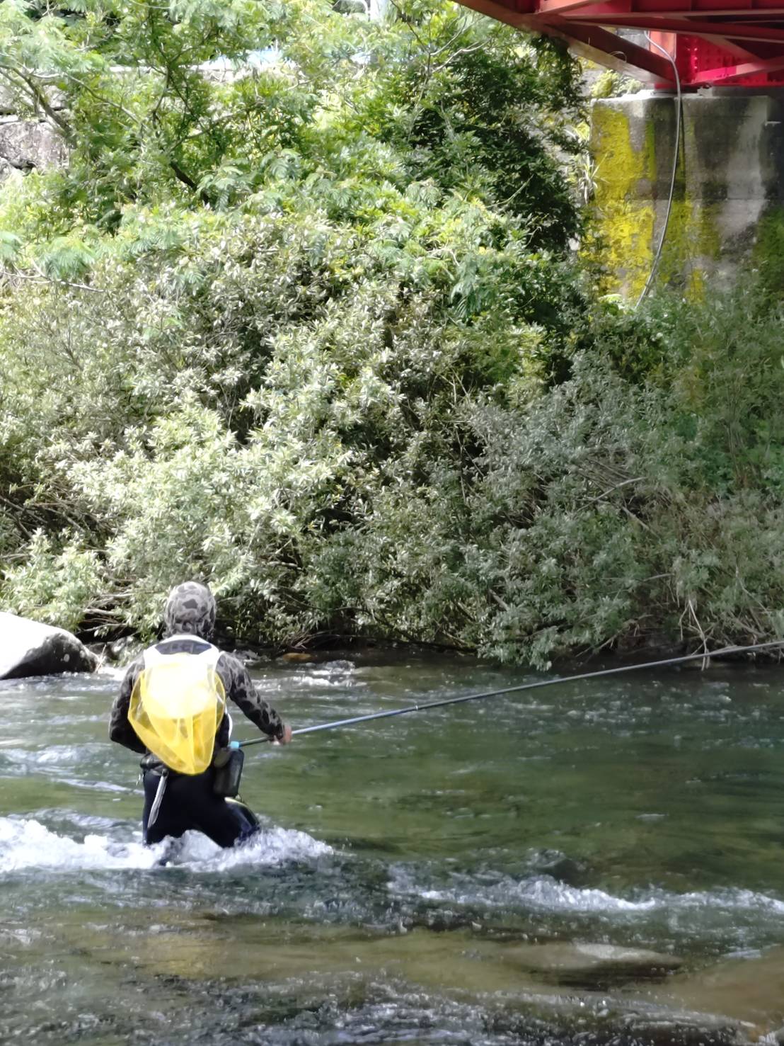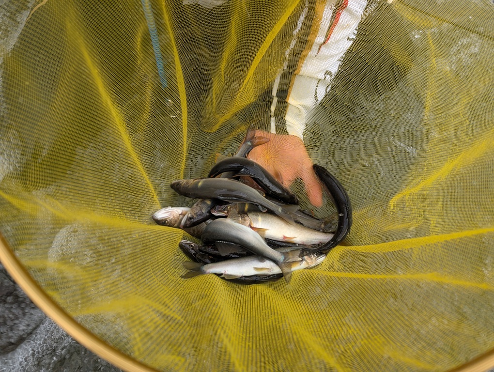 こんにちは~焼津街道店の三浦です。6月27日に岐阜県の白川に鮎釣りに行ってきました。当日は鮎釣り2回目の方と一緒に釣行。何処の河川に釣行しようか迷いましたが、解禁が絶好調だった白川へ。当日は前日までの雨の影響で増水。増水している河川に鮎釣り初心者の方を連れて行ってはダメですね。なんとかなると思っていました全く釣らせることができない!昼前から天然オトリ確保の為、お客様のタックルで私がやってみるも掛からない。ようやく掛かっても2連発でバラシ・・・これはまずいと思い、車に戻り自分のタックルで再挑戦。1時間程で2匹の天然を確保すのがやっとでかなり厳しそう。同行者の元に戻り元気な天然オトリで泳がせてもらうも掛からず。昼食を食べて移動。しかしここでも釣らせることができない・・・私もオトリ確保の為に探るもポツリポツリしか掛からない。天然オトリを確保して戻り、天然オトリを早い流れに入れると17㎝くらいの鮎がようやく掛かってくれました。私が戻る前にも1匹良型を釣っていたので同行者の釣果は2匹。私も4時間くらいで9匹と非常に厳しい釣果でした。全体的に垢ぐされで、鮎はいますが追いが弱く、飛びつきの鮎が少なかったです。垢が飛ぶくらいの雨が欲しいですね。