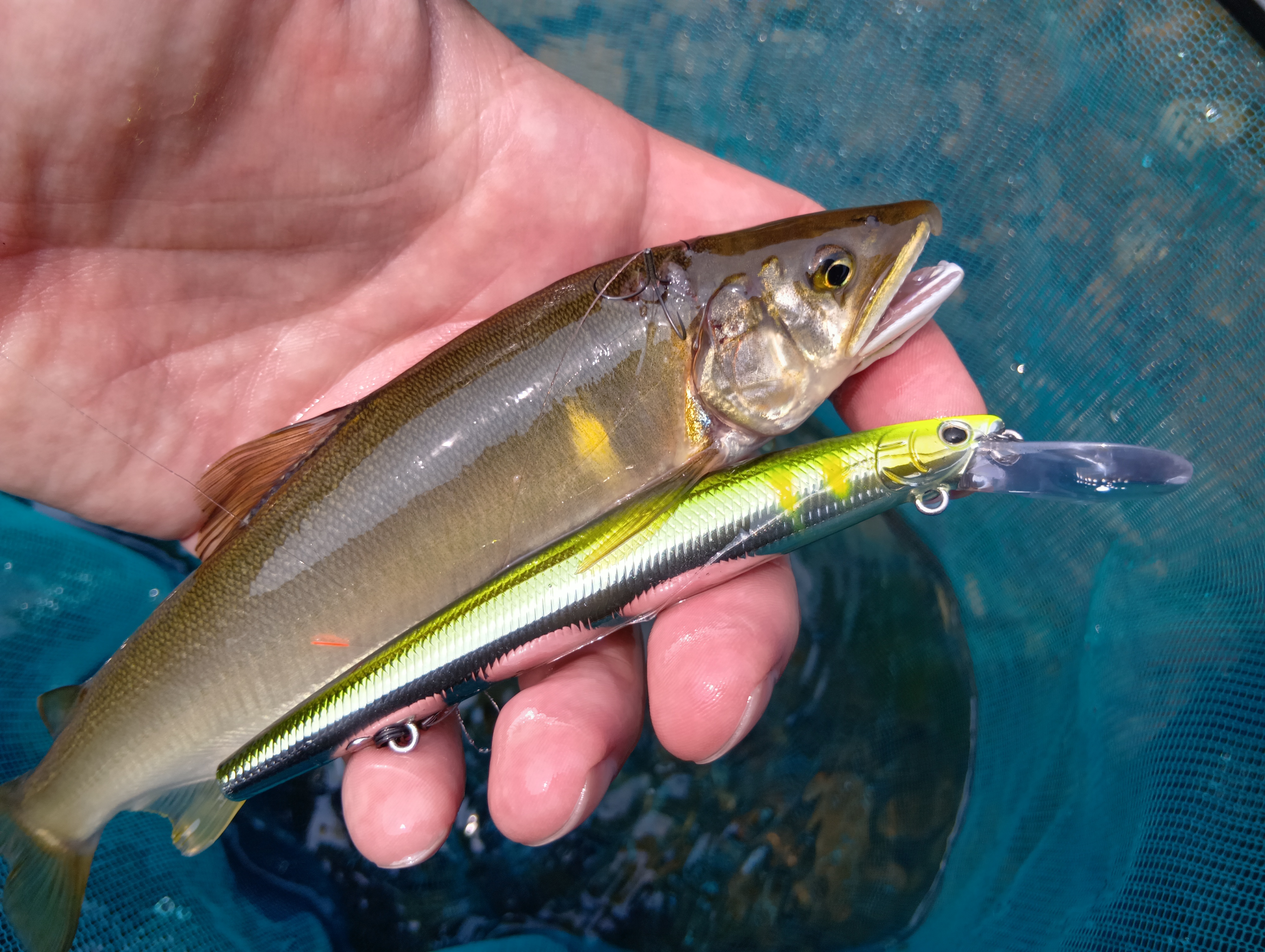 初めてのアユイングでしたが、友釣りとは全く違うタックルで釣る鮎は全く別物!一匹一匹の釣り味が違います!ルアーやタックルの使い分けも面白いです!ぜひやってみてください!!