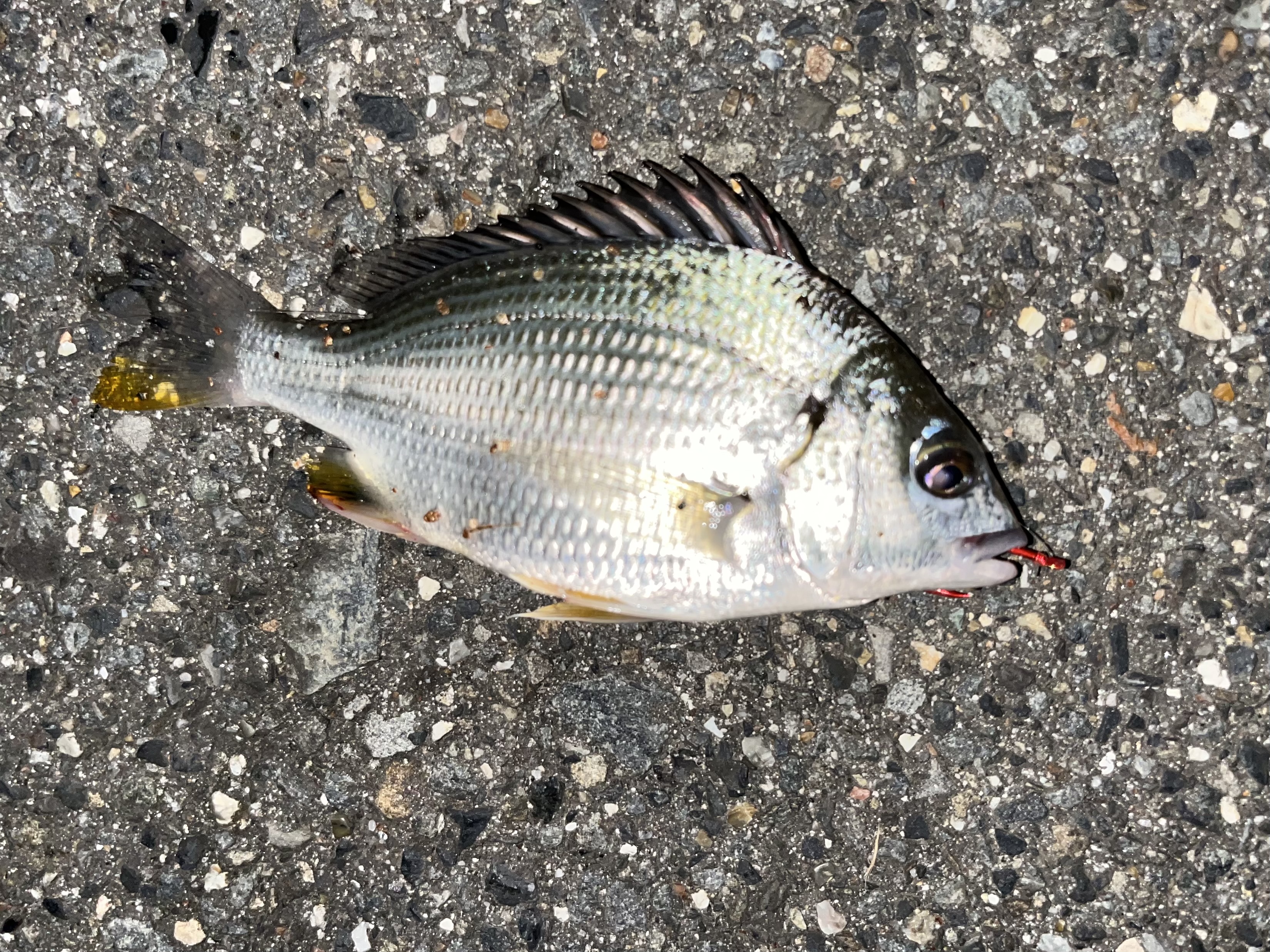ロッドはライトソルトロッド、オモリ4号。エサは青イソメ、カメジャコ。