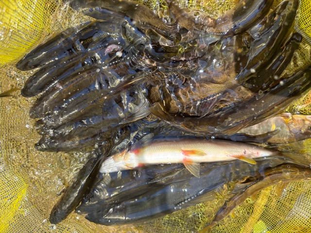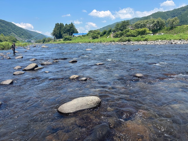毎年恒例の社内鮎釣り大会!に参加して、郡上に行って来ました!7時からスタートで、12時帰着のルールで数釣り、いつもの名皿部橋の上のポイントです。まずは渇水気味です。開始からビリのラッシュで、オトリ交換は1時間ほどかかりました。本流筋はほとんどかからず、淵の竿抜けを探し、ポツポツと数を増やして、かかる鮎釣りもオトリにならないサイズが混じりますが、11時で釣りをやめて帰着に向かい、込み20匹の釣果!私にとっては充分すぎる結果になりました!優勝は37匹!まだまだ鮎は多いので、終盤までしっかり楽しめそうです。