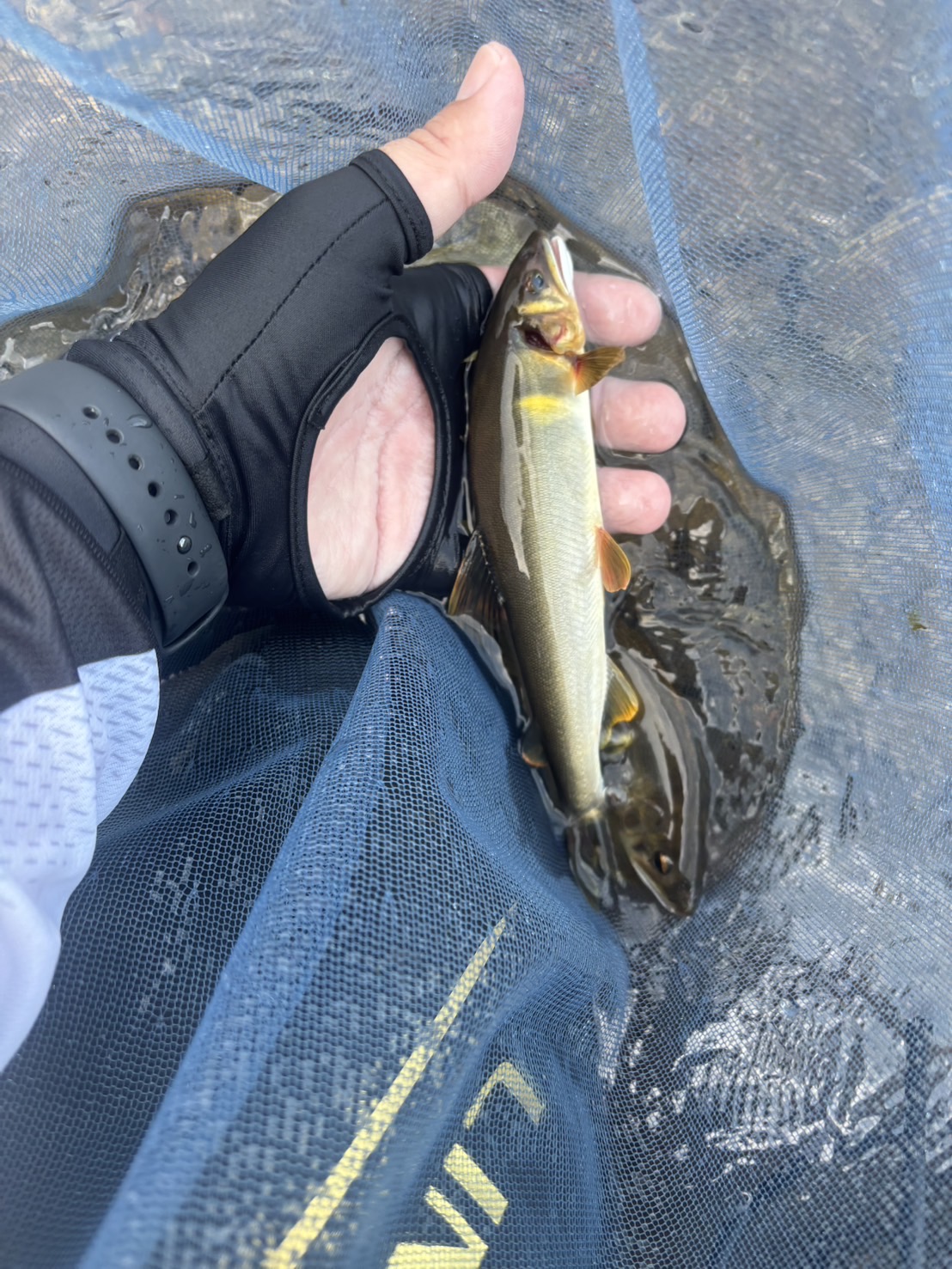 和良川に鮎釣りに行ってきました!森下釣具さんでオトリを購入後釣り場に着いたのは、11時半。水温が高いと思ったので水ならしを着替え前に行い時間をかけました!12時頃にスタートです!がやはり初心者なのでなかなかかかりません。16時頃まで反応なく、諦め半分で早瀬に入れたところ、うまくオトリが入りもしかして!?と思ったら来ました!!強烈なアタリと引きです!これです!和良川は、これがたまらないんです!!そわそわしながらなんとかキャッチです!オトリを交換してまた入れるとなんか怪しいと思い引いてみるともう一発!!またいい引きです!こちらもなんとかキャッチさっきより大きいです!!ここでタイムアウト!翌日も鮎釣りなので帰路につきました!単独釣行でようやく鮎をゲットできました!!使用している竿はシマノ スペシャル競SC90です。初心者の私でも非常に使いやすいです!