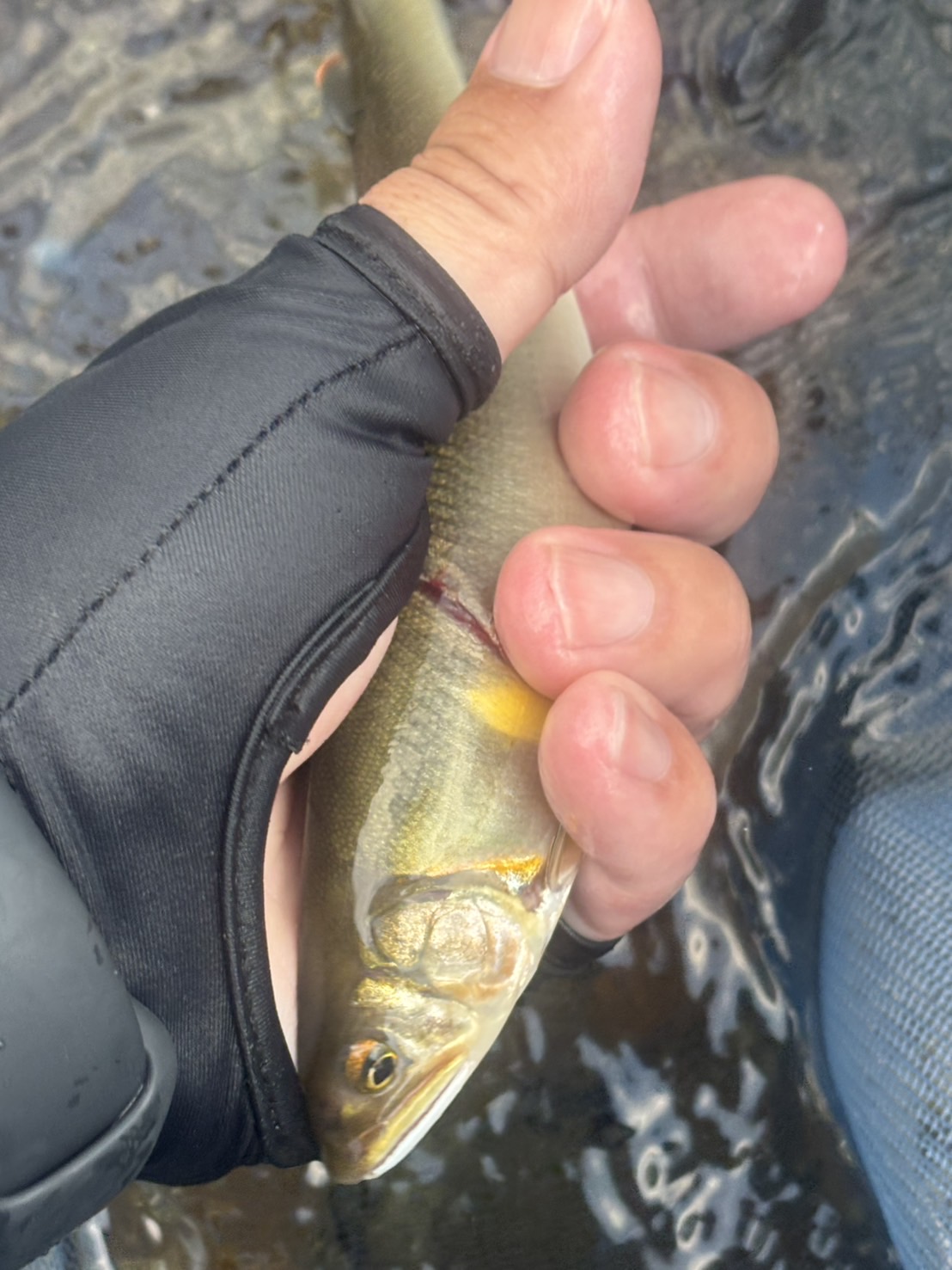 社内鮎釣り大会を終えた後はそのまま南下し、森下釣具さんでオトリを追加して和良川に向かいました!が一面垢腐れのところを歩いて転びながら頑張りましたが16時半頃まで、反応なしで入川口のトロ場で諦め半分でやってると、全身リミプロを着た見覚えのある背格好の人物が現れました!鮎釣り名人の芦江副店長です!とりあえず気持ちを持ち直して近くでやっているとついにヒット大事に取り込みます!いいサイズです!ここでようやくオトリが天然に変わり泳がせてみるともう1発!まさかの抜けません!がなんとか抜いてくるとこれまたいいサイズ!その後は反応なく納竿。芦江副店長の舟の中を見せてもらうと私のよりさらに大きいのが入っていました!流石です!次は5匹を目指してみたいです!