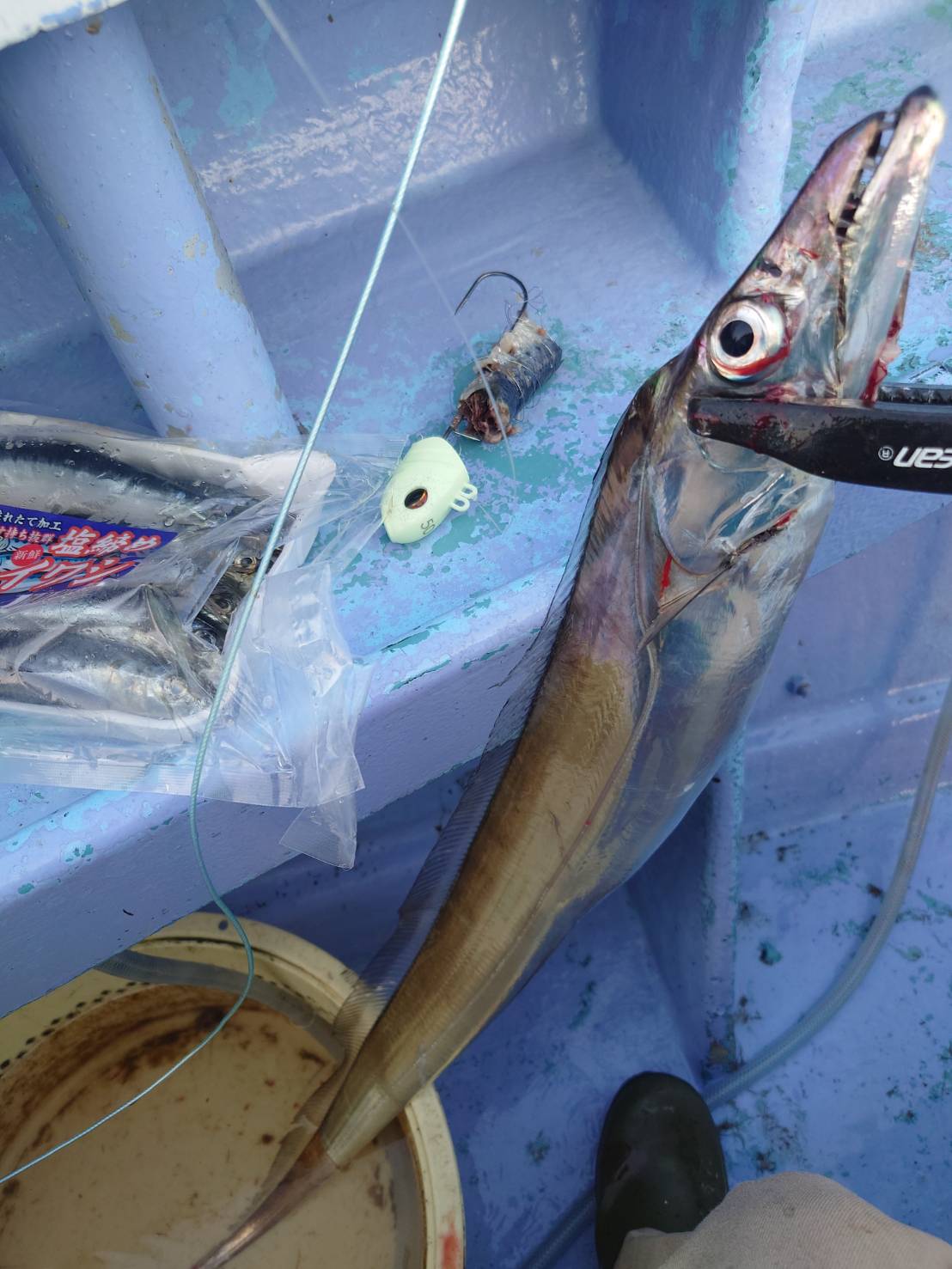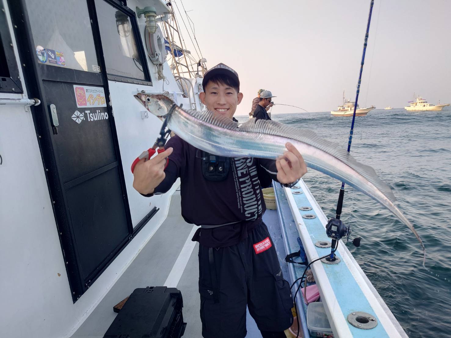 フィッシング遊刈谷店、豊橋店メンバーでタチウオテンヤに行って来ました、師崎でのタチウオテンヤは初挑戦でした、テンヤは50号統一で、ダイワの船タチウオテンヤSS-STを使用しました、水深60~70mほどで60m~40mラインを釣りました、今の時期はサイズも大きく指4~6本位のタチウオが上がっていました、竿をちょんちょんとシャクリ上げてストップを入れるとアタリがありました、アタリがあってもなかなか掛かりませんでしたが、何とか1本釣り上げる事が出来ました、朝にアタリが集中し9時頃まではアタリがありましたがその後は厳しい状況でした、私は苦戦し最終的に指5本位のタチウオ2本で終了となってしまいました、良い方だと8本釣られている方の見られました、細かくシェイクされている方が釣果を伸ばしている様でした。釣れれば大型ばかりで、大型タチウオ狙いたい方は今がチャンスです!