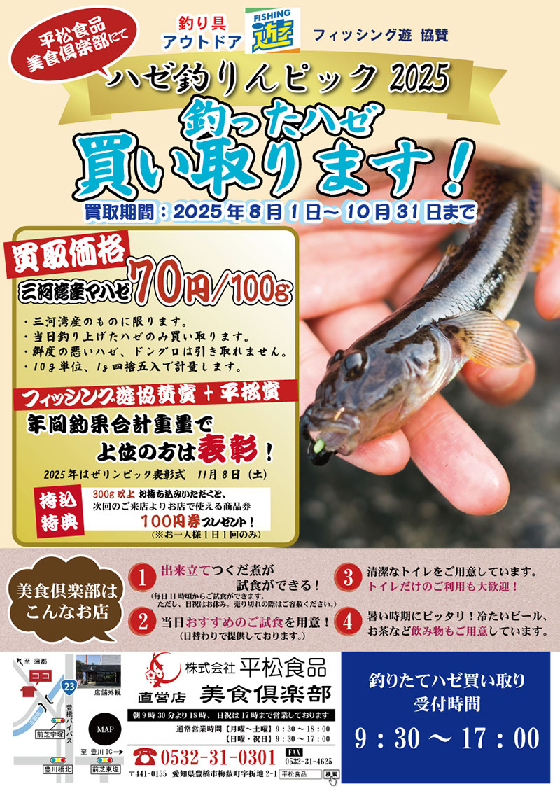 今豊橋~田原方面にかけてハゼが絶好調です!本日も田原周辺にてハゼ釣りに行って来ました、エサは石ゴカイを使用し、無くなった時の予備でいつでも使えるマルキュー はぜホタテを使用します、ハゼほたては色々試しましたが、一度開封して少し色が黄ばんでも、遜色なく喰ってきます。ウキ釣りで釣りをして、仕掛けはハヤブサ ハゼだぜ8号を使用しました、ウキにアタリがあったらショートにあわせて、少し放置し2匹掛けを狙います。満潮から下げで釣りをして、水位がある内は少し投げて広範囲に探りハゼの魚影の濃い場所を探して釣りをしました、潮が低くなってくると、広範囲にハゼはいなくなりますが、浅くなりハゼの居場所が狭まるので一か所で爆釣できます。スタートからコンスタントに釣れ続けました。4時間ほど釣りをして200匹以上は釣れました。たくさん釣ったハゼはフィッシング遊も協賛させて頂いている、平松食品さんのハゼ釣りんピックで買い取りもしてもらえます。売ると平松食品さんの販売している甘露煮等の100円引きの券も一緒に貰えます、今回もハゼを売って、重量は2200gちょっとでした。売ったお金で鮎の甘露煮、テレビ等でも紹介されたごはんじゅれを購入しました平松食品さんの甘露煮は絶品で美味しいです。