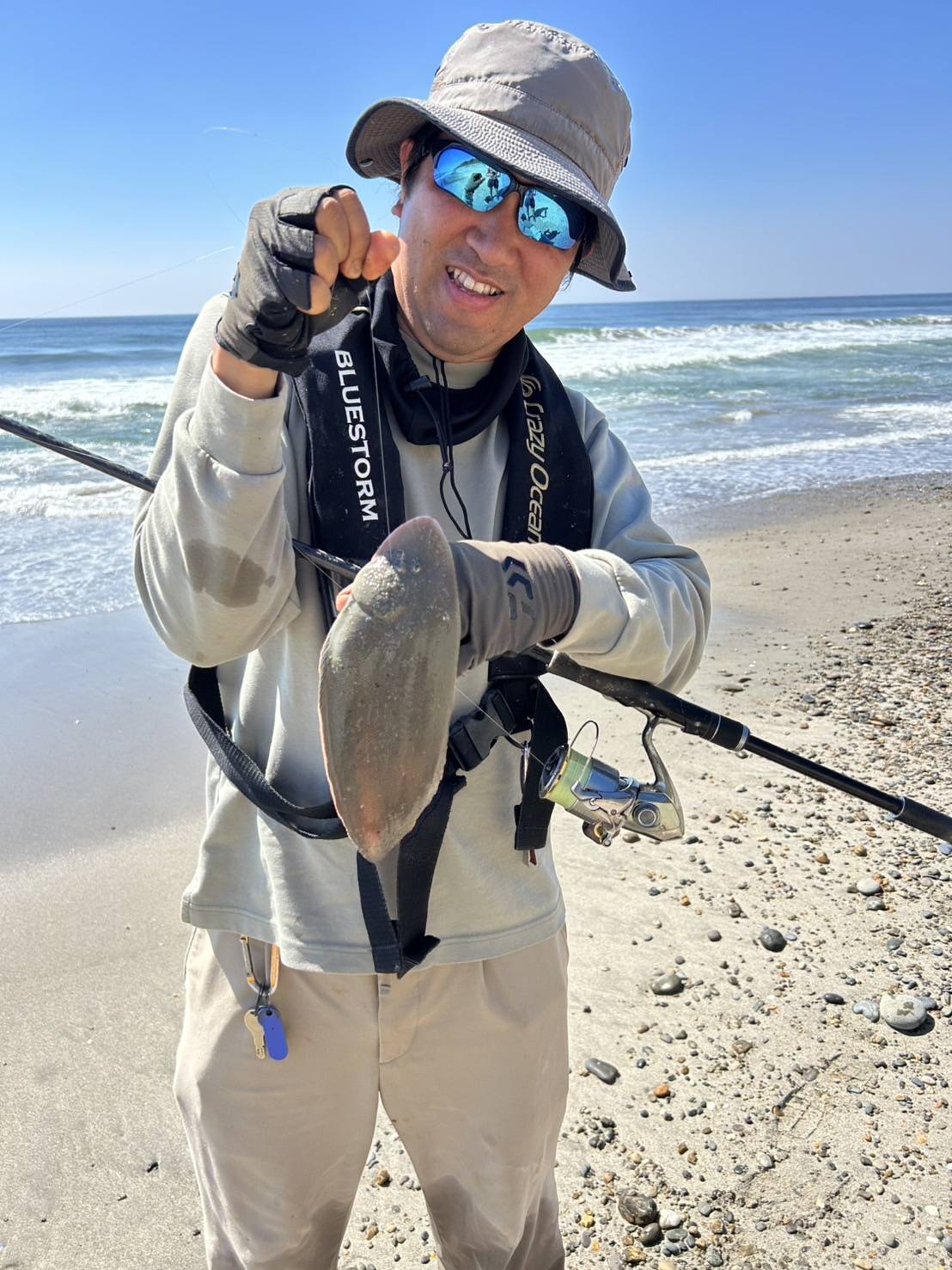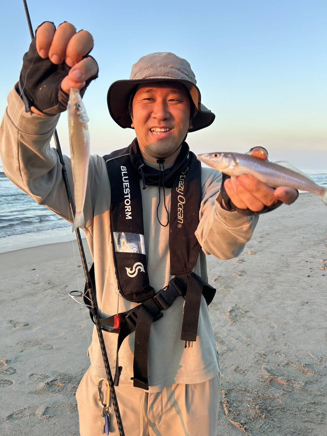 フィッシング遊豊橋店です!当店スタッフは豊橋~田原サーフ方面サーフにちょい投げにてキス釣りに行ってきました!エサは石ゴカイと青イソメをもっていきました。仕掛けはハヤブサ 投げ釣りキス3本針は使用しました。オモリ15~20号タックルはサーフルアーで使用しているルアーロッドにて釣りをしました、朝一は50m程投げた所で、ポツポツとアタリがあり、良型キスが掛かってきました、キス以外にもヘダイがかなり釣れヘダイも10匹以上は釣りました、中盤から近場でアタリが集中しました、投げて底をとり、数回ゆっくり巻いて10秒ほど止めて待ってアタリが無ければまた数回巻いてまつの繰り返しで入れ食いでした、一番よく当たったのは波うち際、もう後2~3m程巻くと岸にオモリが出て見えてしまう位の所が一番アタリがあり、入れ食いでした。最終的にまだまだアタリはありましたが、エサが無くなり終了となりましたが54匹の釣果でした、8割以上はは20cm近い良型ばかりでした。この大きさのキスはビリビリとアタリも強烈で釣っていても楽しいです!