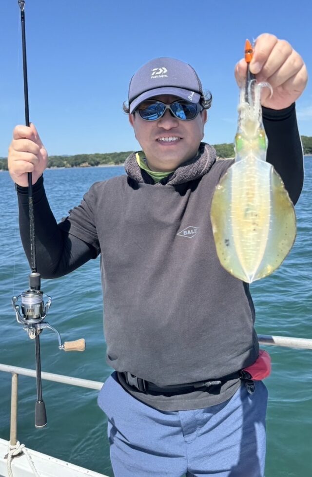 11時が干潮の潮止まりだったので潮が緩んできたタイミングで地合い突入!そこから立て続けに釣れて6パイほど釣って終了しました。船中でも3人でアオリイカ17ハイと、コウイカ3バイほどでした。