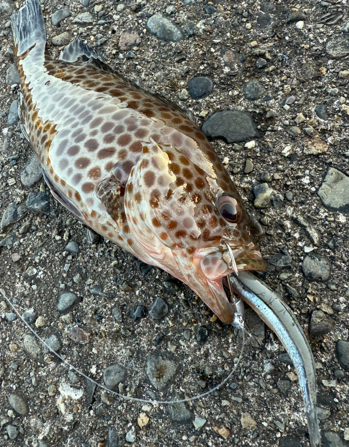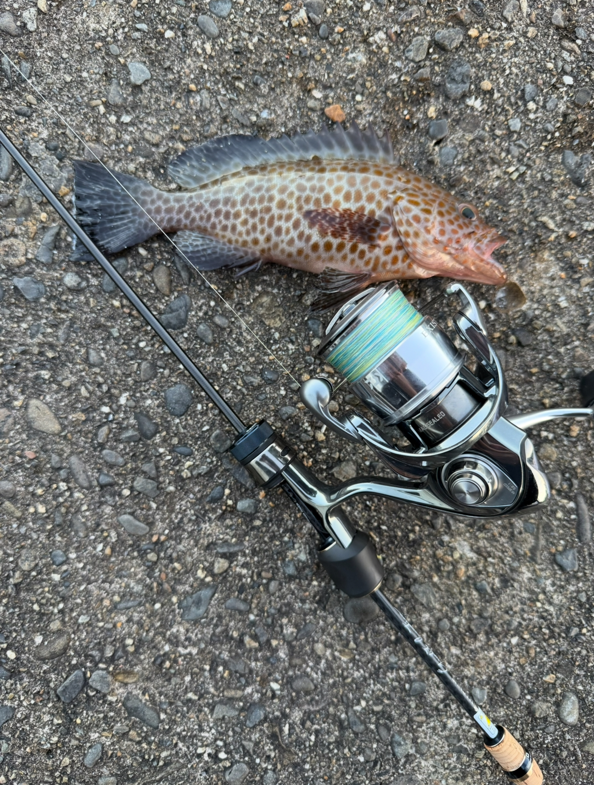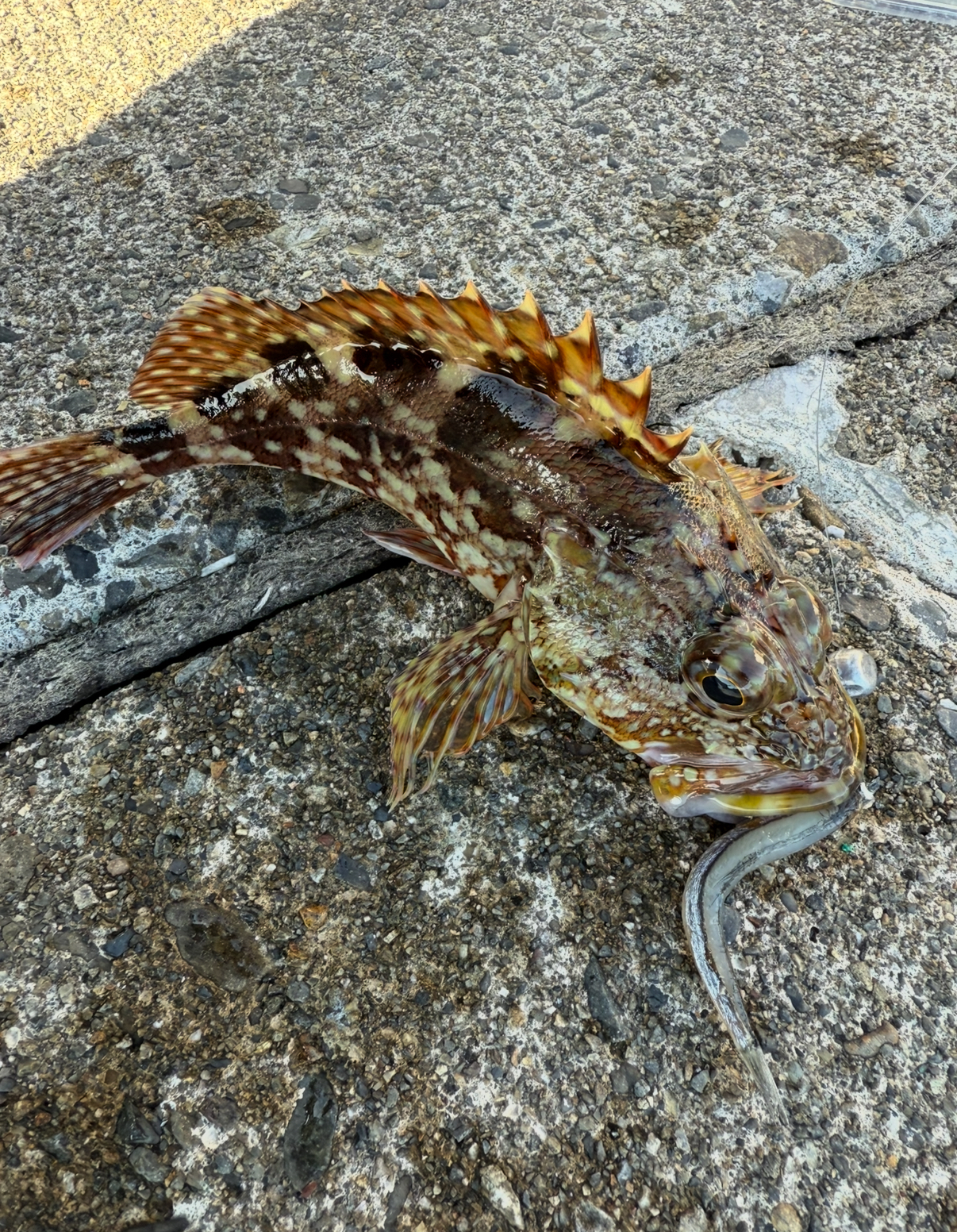 南伊勢方面の漁港へ堤防釣りに行ってきました。最近は大型の青物が釣れると噂を聞いたのでそれ狙いでしたが、当日はおらず。エサ釣りにシフトしてスタート!虫ヘッドパワー6gにキビナゴを無理やり差し込んでボトム狙い。根掛かりもしますがうまくかわしていくとガツガツといいあたりで良型カサゴ連発!おまけにオオモンハタも多数。カサゴは抱卵個体と20センチ以下は全てリリース。オオモンハタもリリースで終了。簡単な仕掛けですが、アタリからファイトまで楽しめるのでおすすめです。どうしても根掛かりは起きる場合があるので針のストックは持っていきましょう!